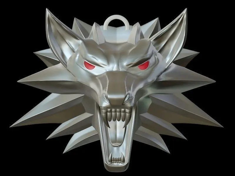 Witcher's wolf medallion, as seen in witcher 1 videogame. contains highpoly version with separated parts and lowpoly one as one object