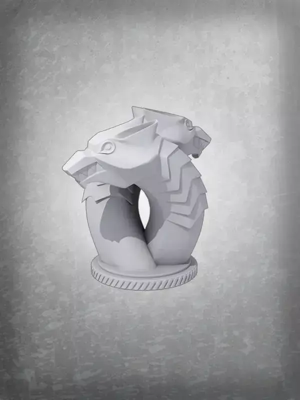 Design & Aesthetic FeaturesSymmetrical Sculpt: Features the mirrored snarling wolf heads with deep-set features, ensuring that metallic paints and weathering washes catch the light and shadows realistically.