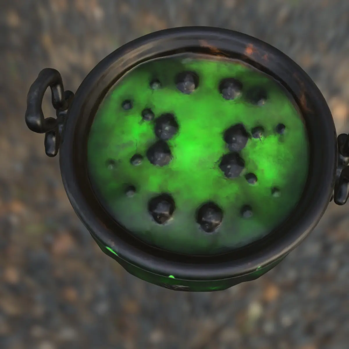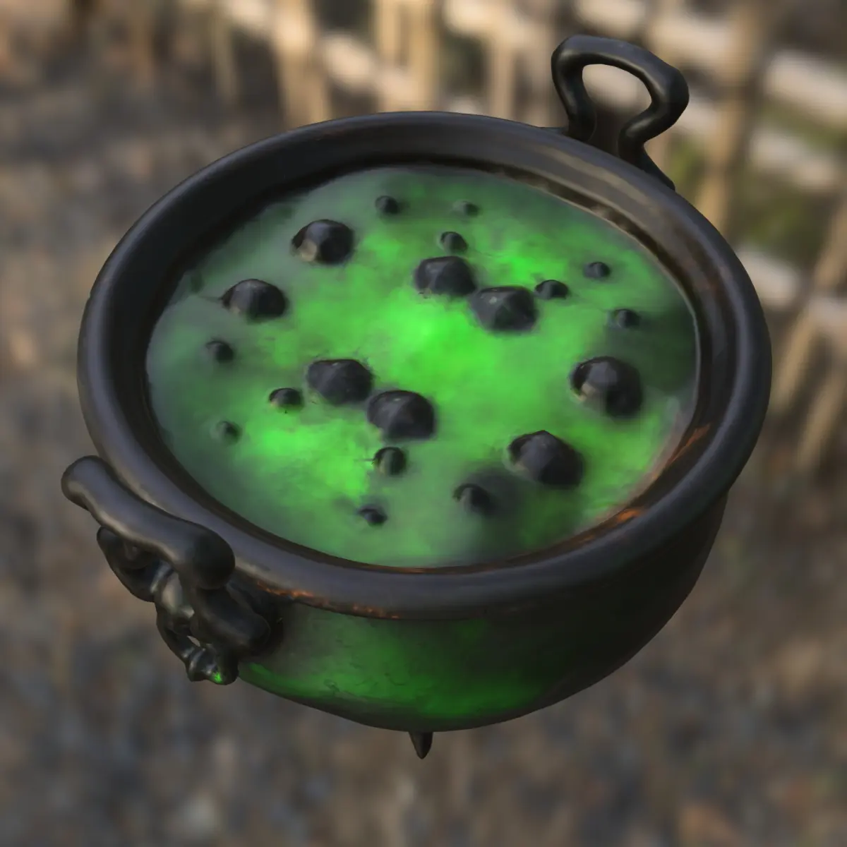 The Witch’s Bubbling Cauldron is a highly detailed 3D model featuring a dark iron pot filled with a glowing green magical potion, perfect for fantasy and horror environments. Ideal as an interactive or decorative element in RPGs, horror games, or magic-based titles such as Skyrim, Elden Ring, The Witcher 3, Diablo IV, Dark Souls, or Hogwarts Legacy.