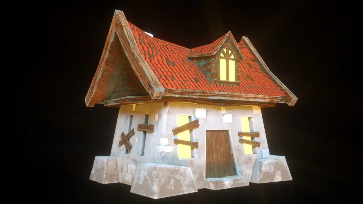 Low poly model of a witch's abandoned house.