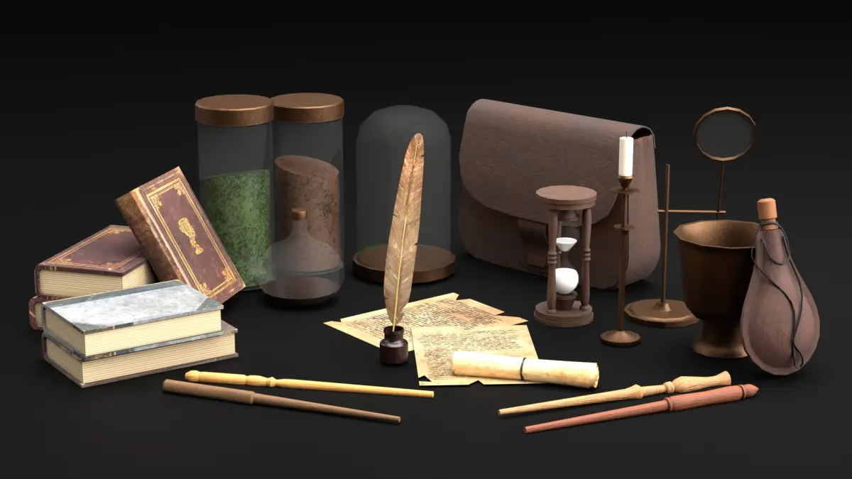 Wizard Student stuff/properties for magical classroom in various material.-Wand-Staff