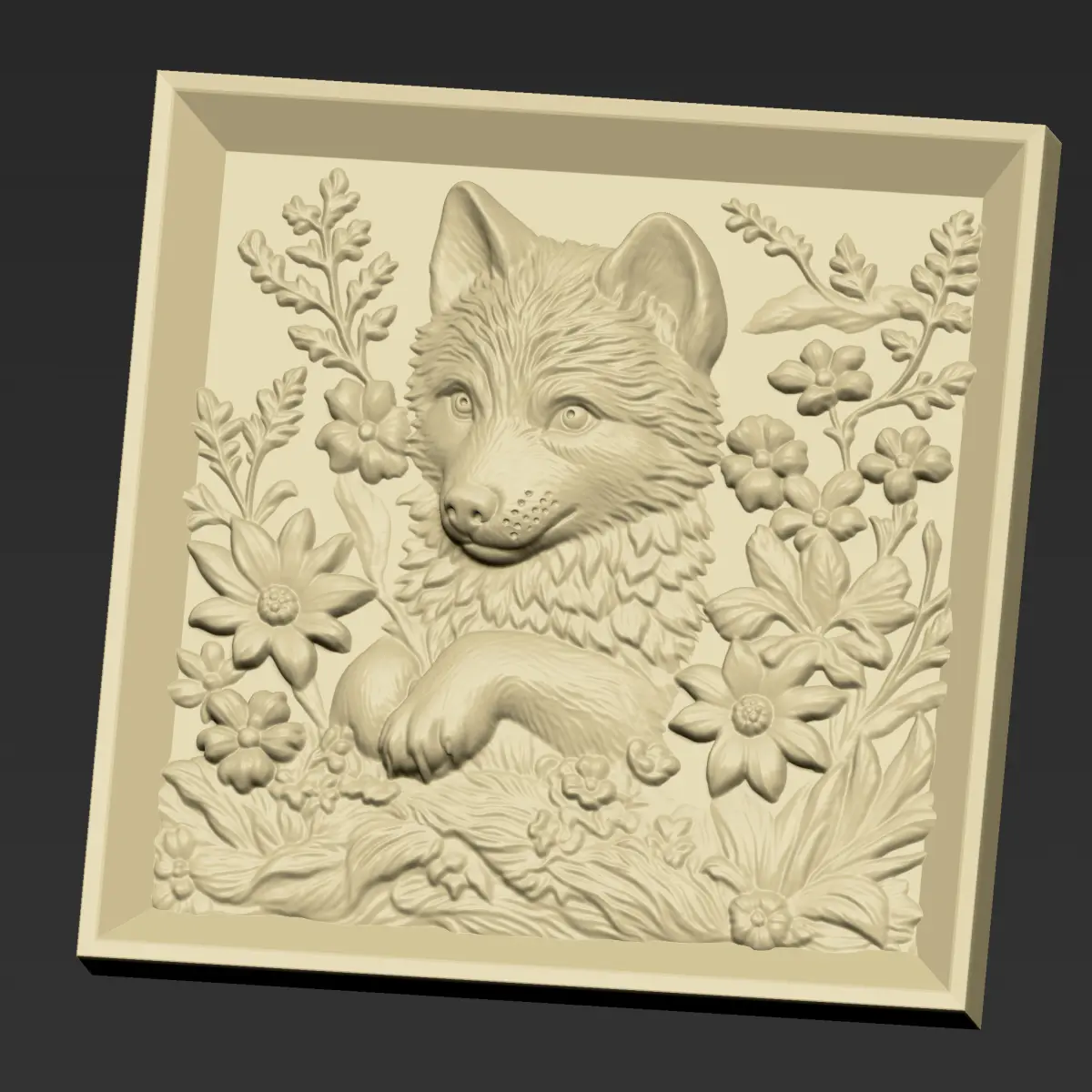3d model of bas-relief of a wolf cub ready for CNC Router Carving or 3d printer.OBJ,STL format.Note:All the models are not for resale,it is illegal!
