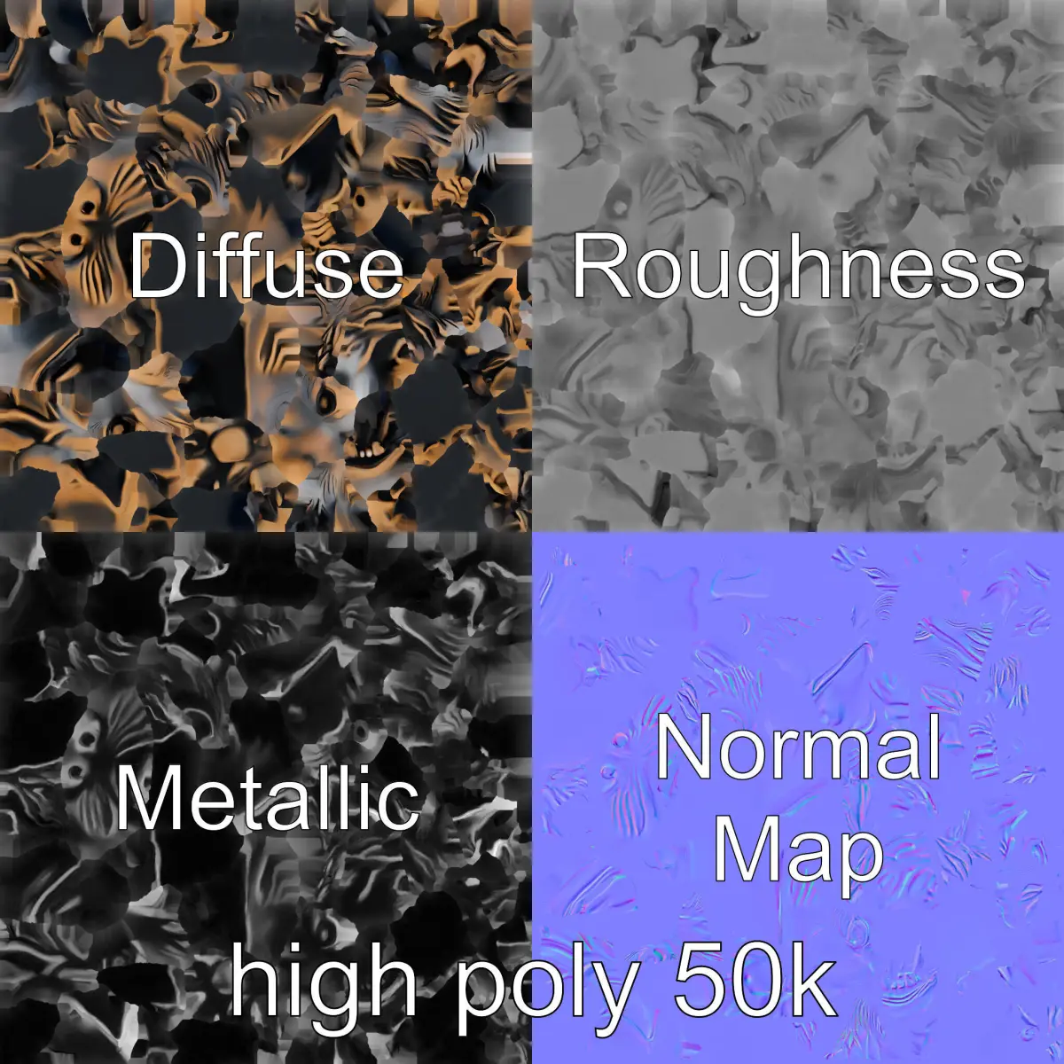 The model's textures are PBR, Diffuse, NormalMap, and reflection/roughness/metallic, which are suitable for any modern rendering engine. All models are accurately unwrapped and have no overlapping UV. All textures are 4096x4096 in size.
