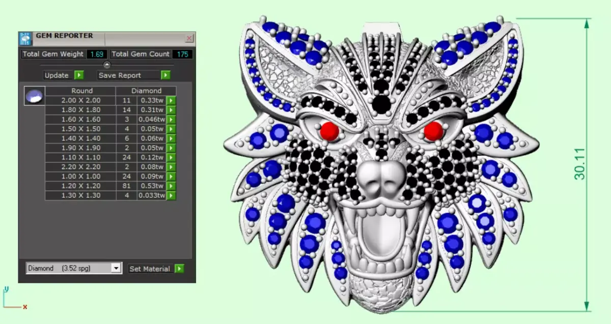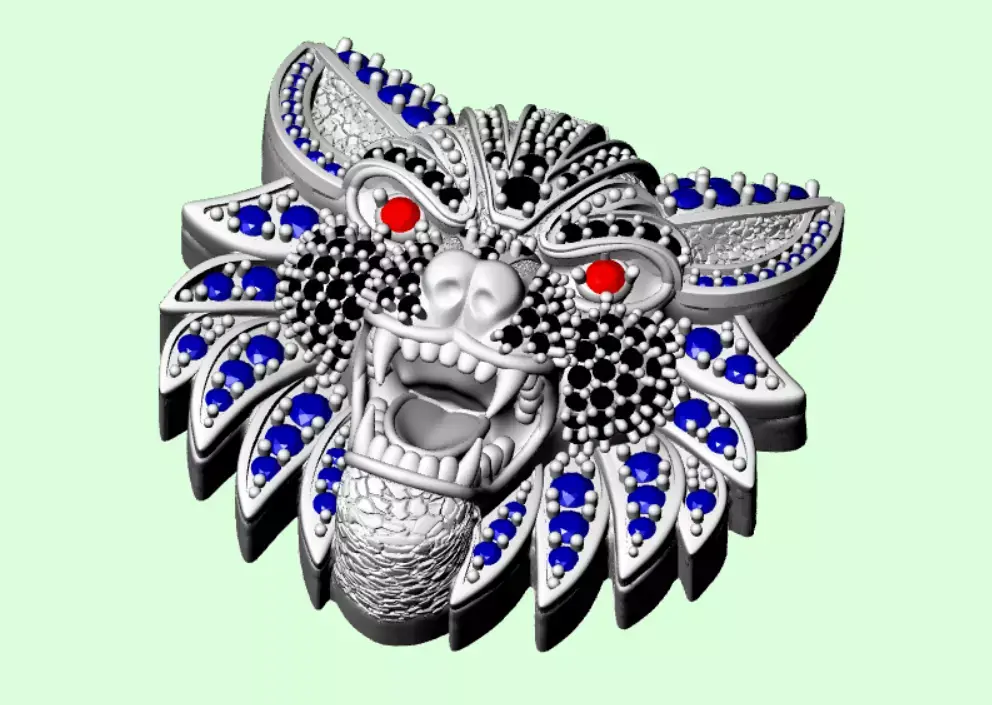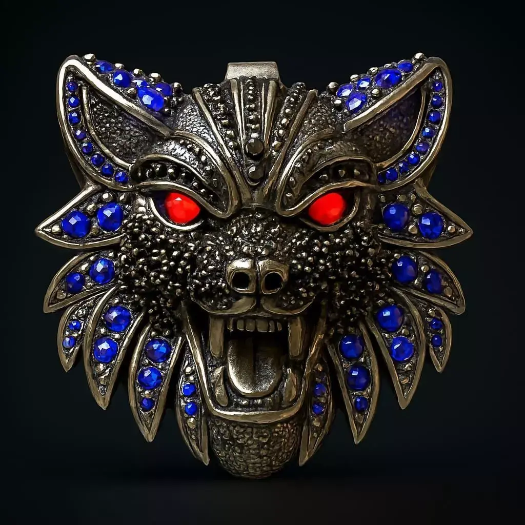 Wolf Head Pendant 3D Model – Gemstone Encrusted