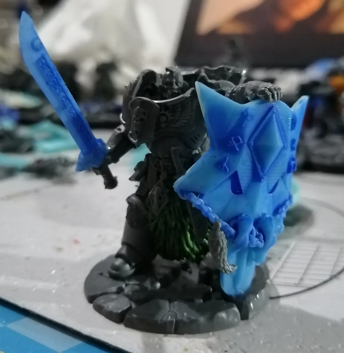 Suitable for blade guard sized models but can be scaled down for first born marines too