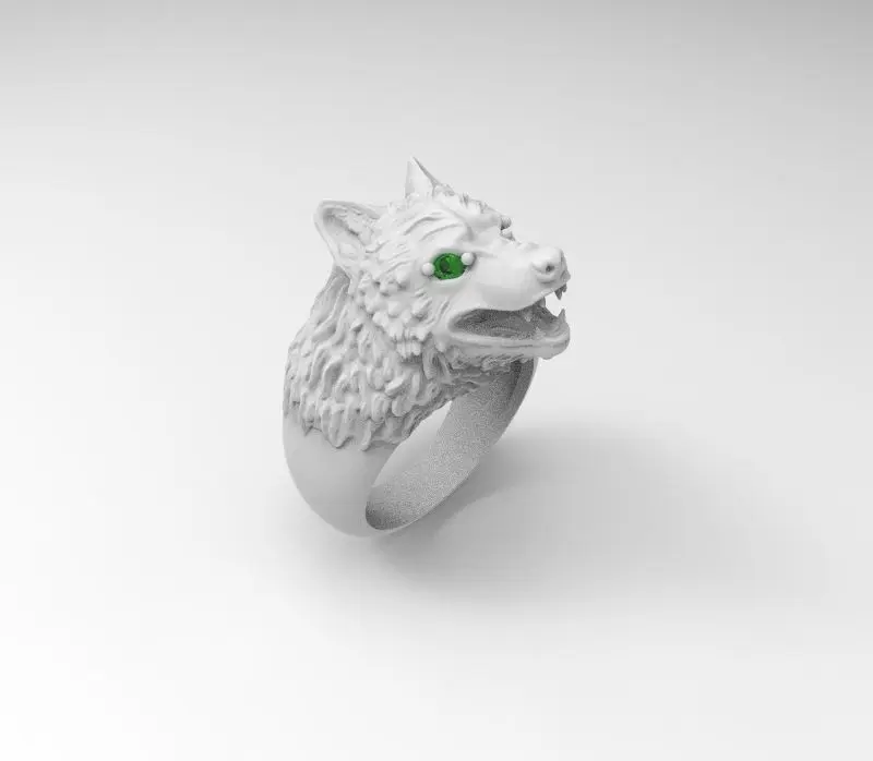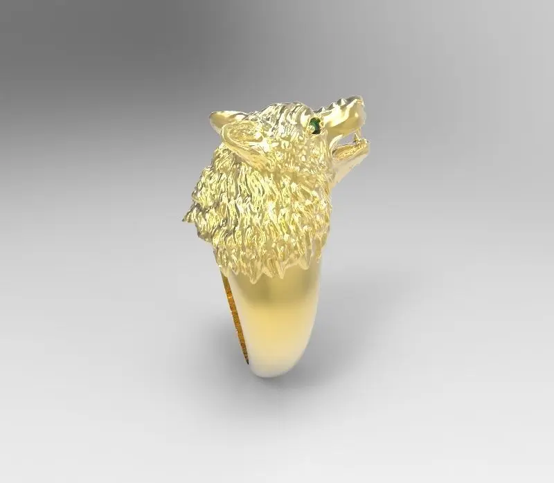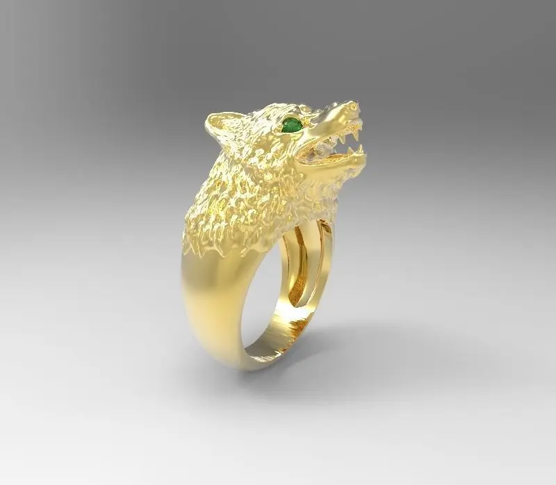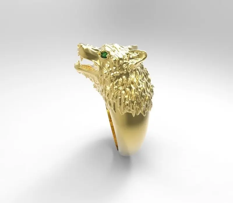 Anillo lobo para HombrePiedras en los ojos de tamaño 2.0 mm.inspirado en las noches de luna llenaArchivo STLMalla cerrada