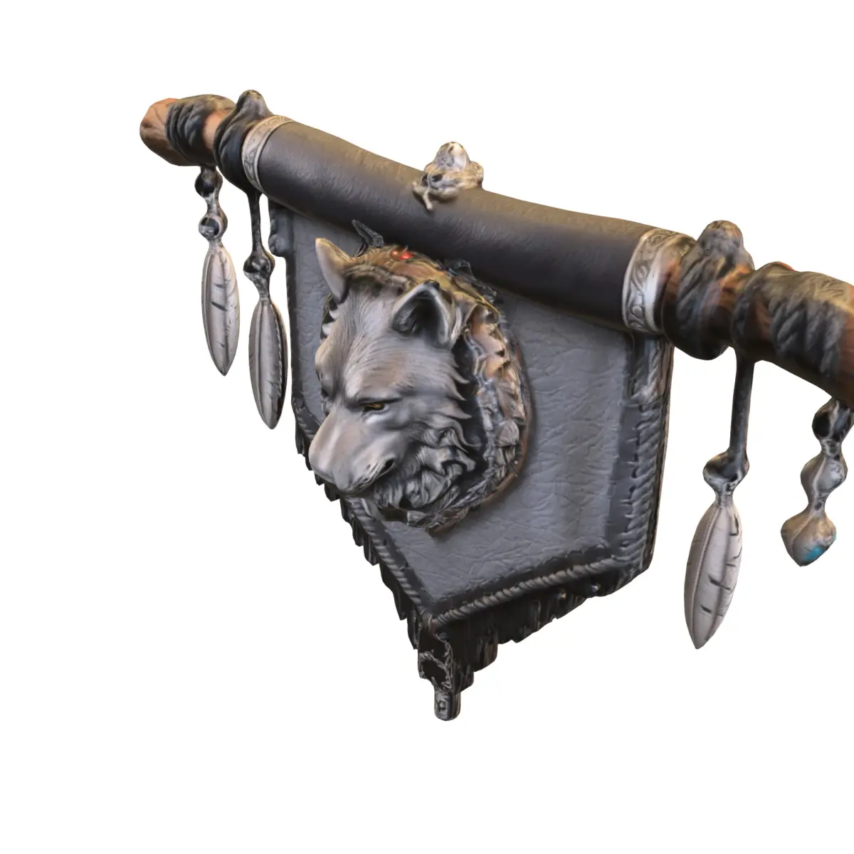 The Wolf Totem Banner is a highly detailed 3D model perfect for use in fantasy, tribal, medieval, or RPG game environments. Featuring a sculpted wolf head emblem, decorated with feathers, beads, and a leather-textured hanging cloth, this banner adds richness and lore to any scene. Ideal for game assets, cinematic environments, collectible 3D prints, or tribal decor, the model includes PBR PNG textures (2048x2048 and 1024x1024) and is exported in multiple formats: OBJ, FBX, STL, DAE, PLY, GLB.
