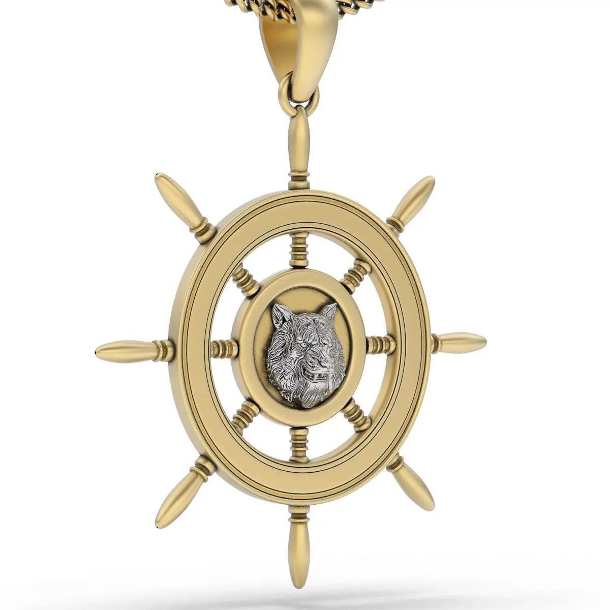 Wolf wheel pendant silver gold jewelry printable 3D model 3D print model