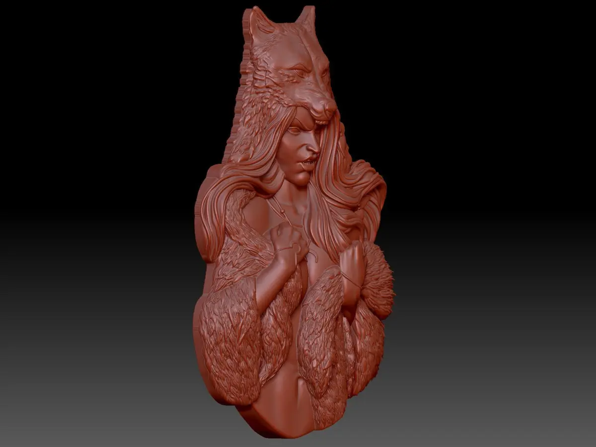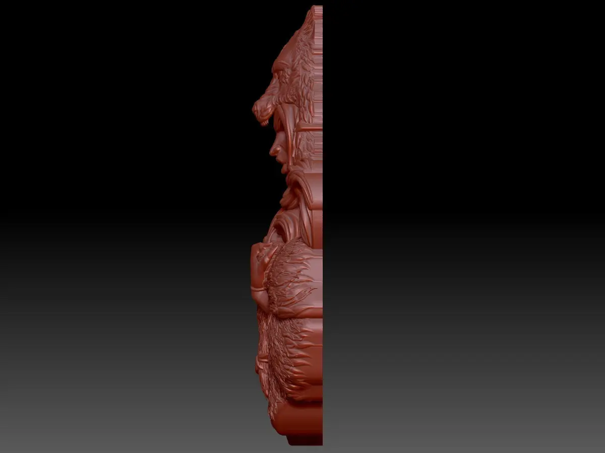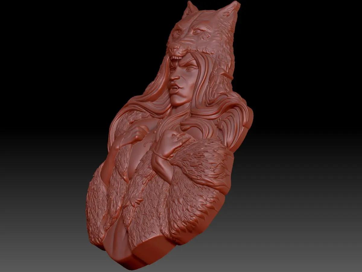 The 3D model of the bas-relief called Wolf Woman is a work that fascinates with its beauty and originality. It depicts a girl dressed in a wolf skin, with an aggressive gaze directed at the viewer. This project is perfect for both 3D printing and processing on a numerically controlled machine.