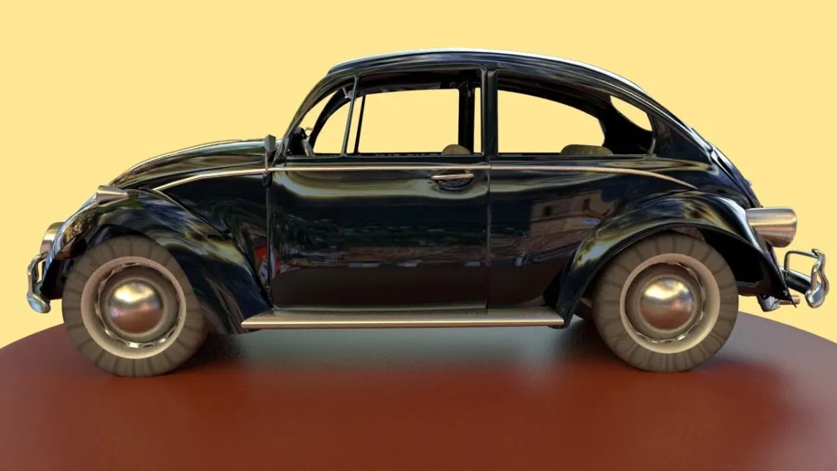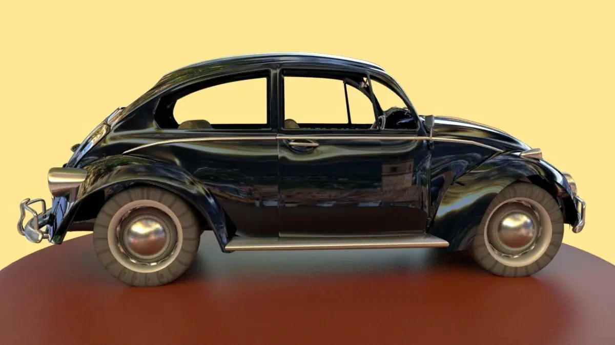It's a black Volkswagen beetle. It's modeled, textured, iluminated, and rendered with Autodesk Maya 2018 in Arnold. The modeling is Low poly, the design is created to be used for any type of render, trailer, project, video game ...