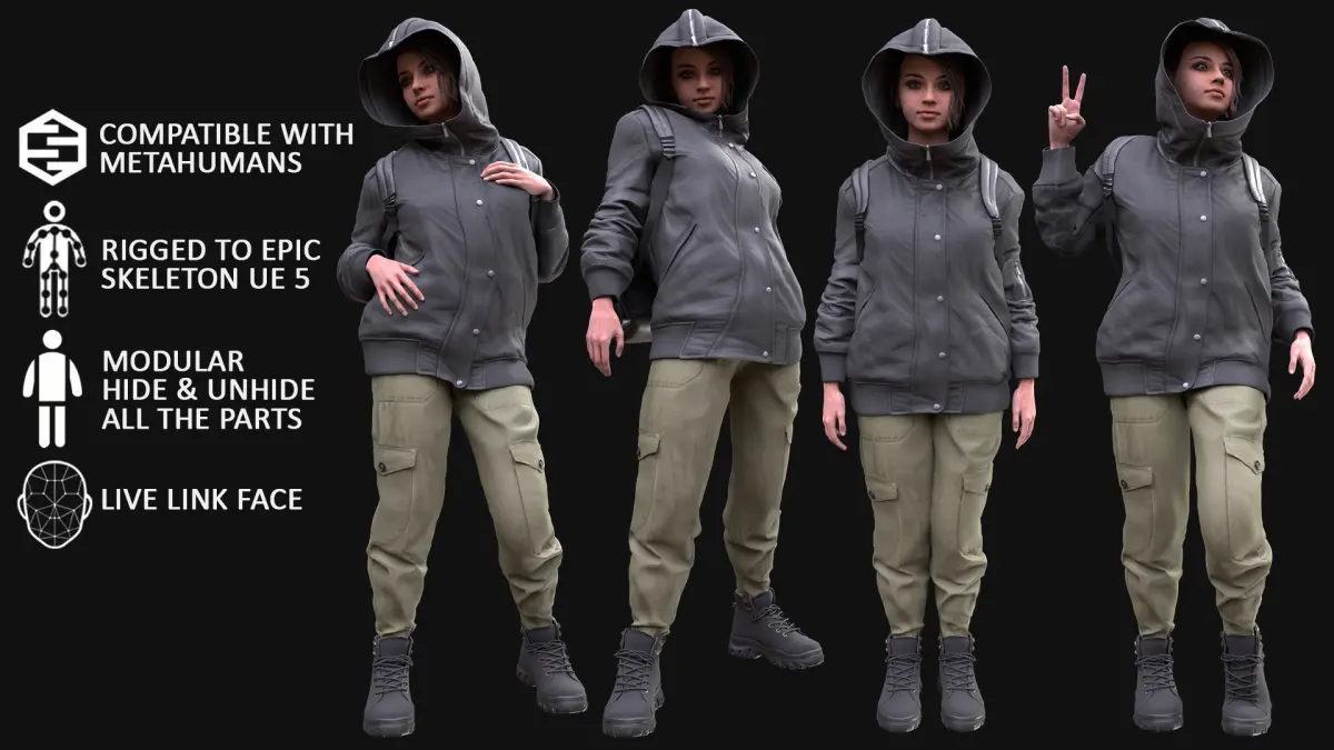 100% compatible with female Metahuman (Normal/Average body - MH Skeleton)This is not a Metahuman's body and face. This is our creation.But this body has exactly the same shape as the Metahuman's body (Normal/Average)So you can put this Outfit on your female Metahuman (Normal/Average)