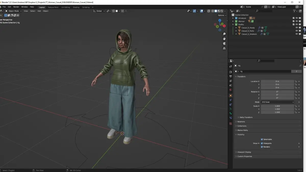 - Blender 3.6 - Rigged (based on rigify addon)