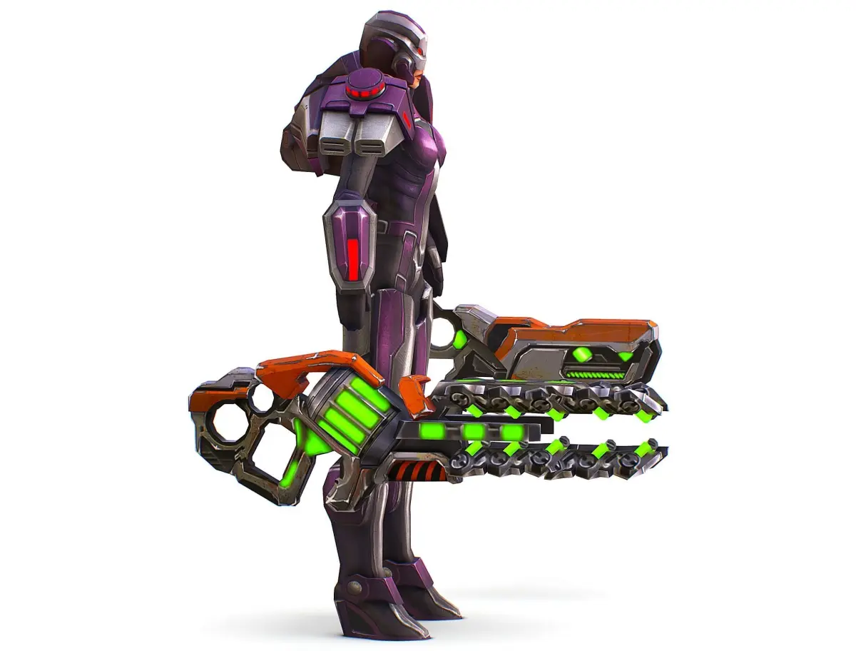 Home Catalog Woman Cyborg Machine Gun with Rifle and Pistol Low-poly 3D model