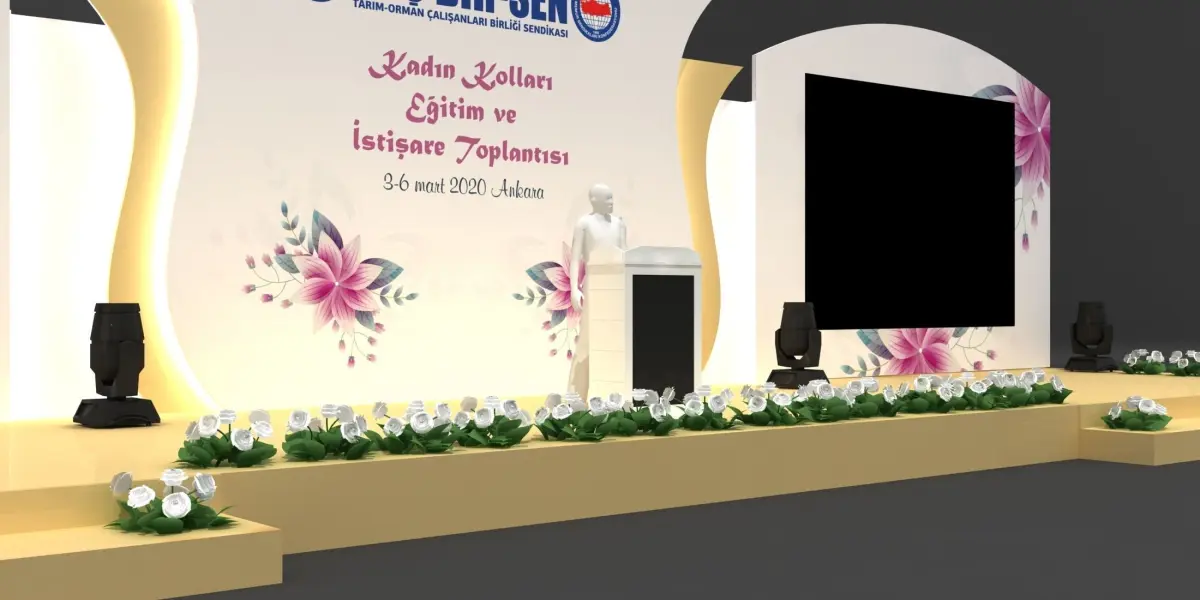 This is a women day 3d stage decoration headtable and lectern.