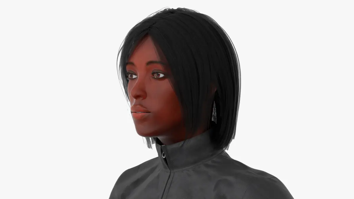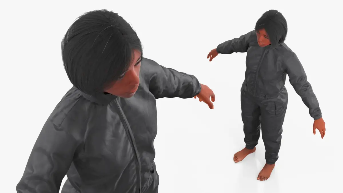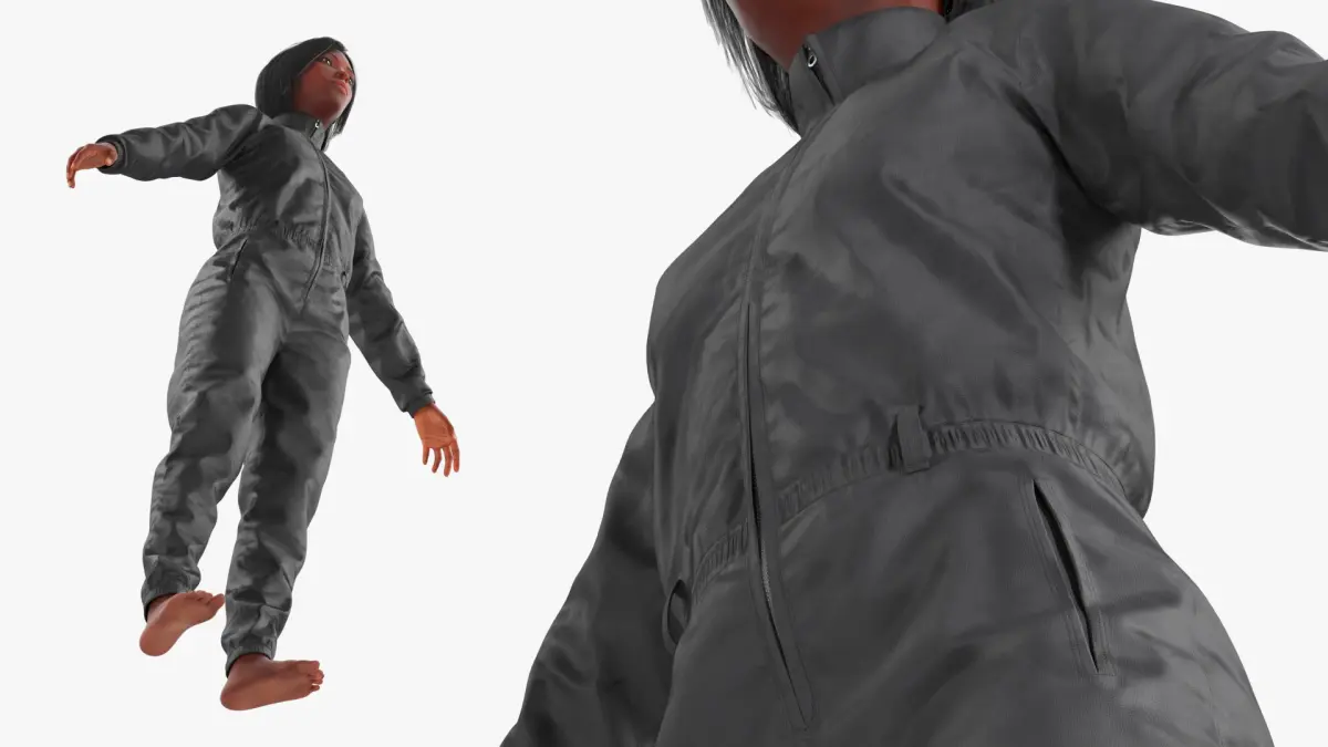 Woman in Industrial Work Coverall Black Fur is a three-dimensional model of African-American woman in the versatile protective garment designed for various industrial and recreational activities.