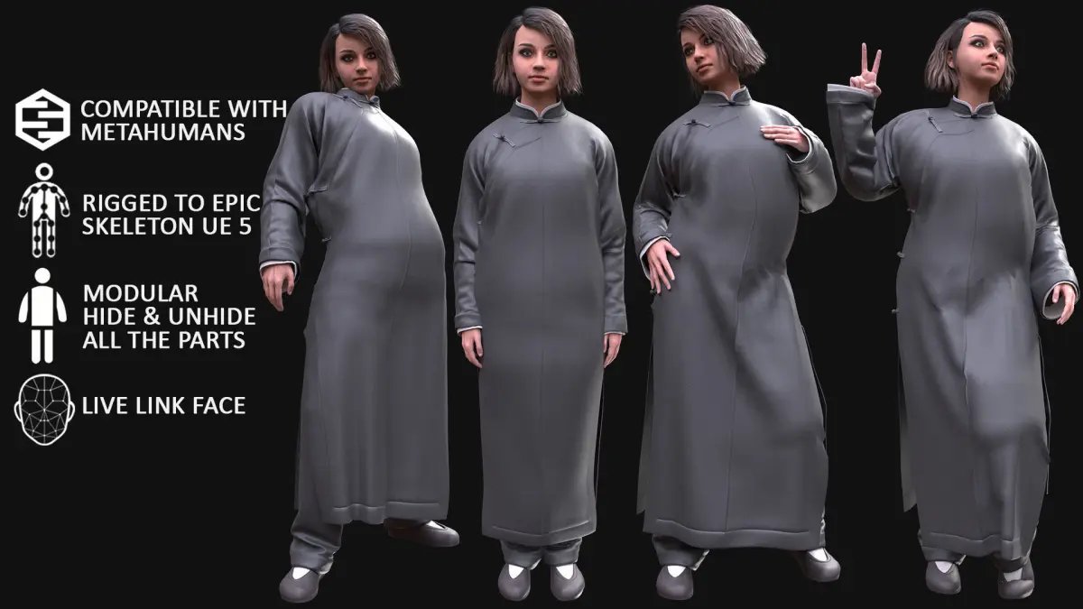 - 100% compatible with female Metahuman (Normal/Average body - MH Skeleton)This is not a Metahuman's body and face. This is our creation.But this body has exactly the same shape as the Metahuman's body (Normal/Average)So you can put this Outfit on your female Metahuman (Normal/Average)