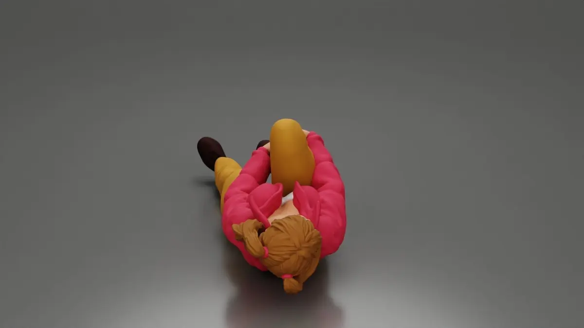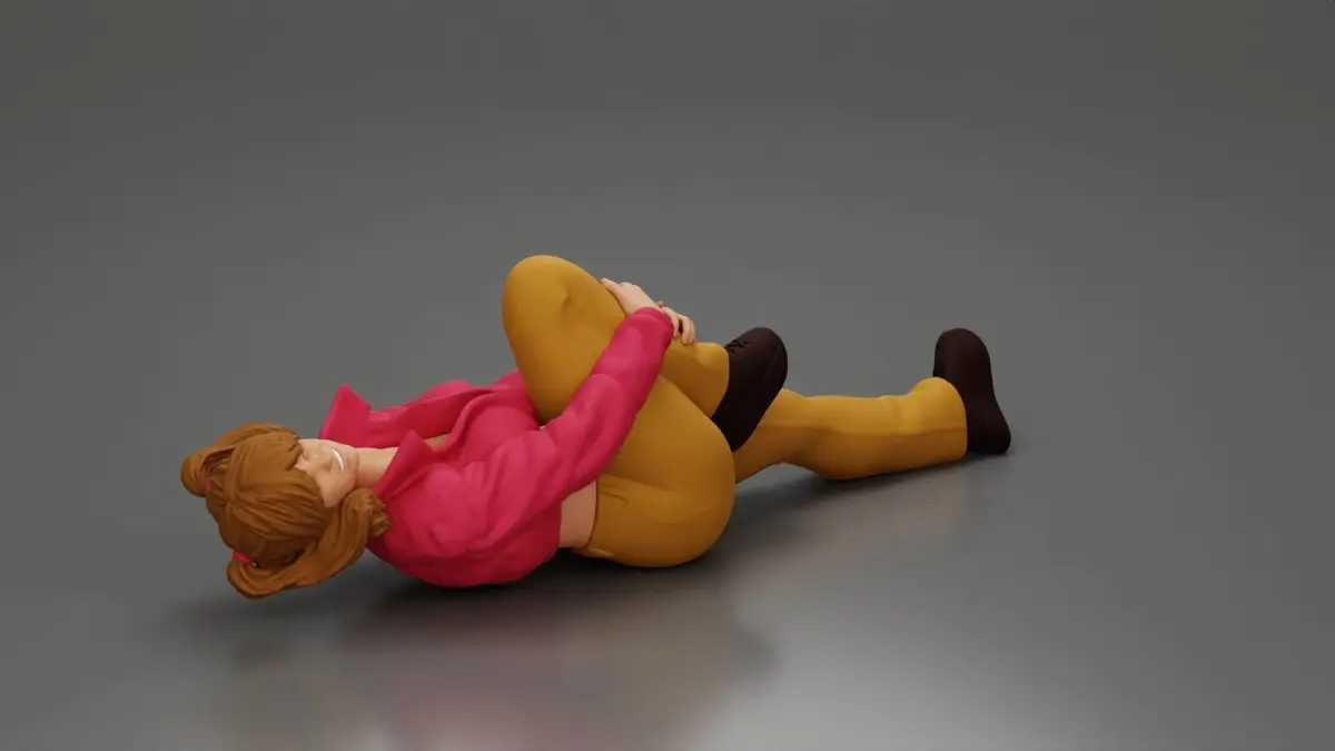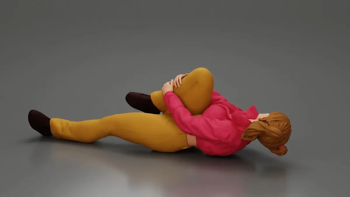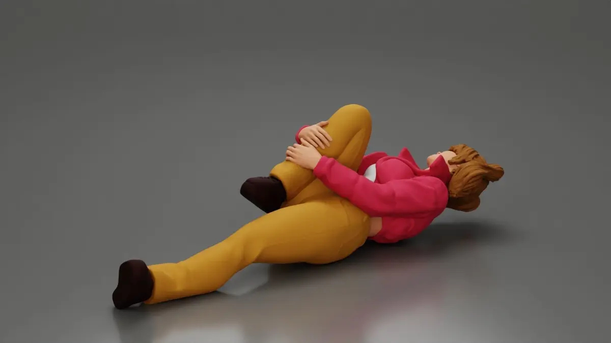 woman in mini jacket lying on the floor touching injured knee 3D print model