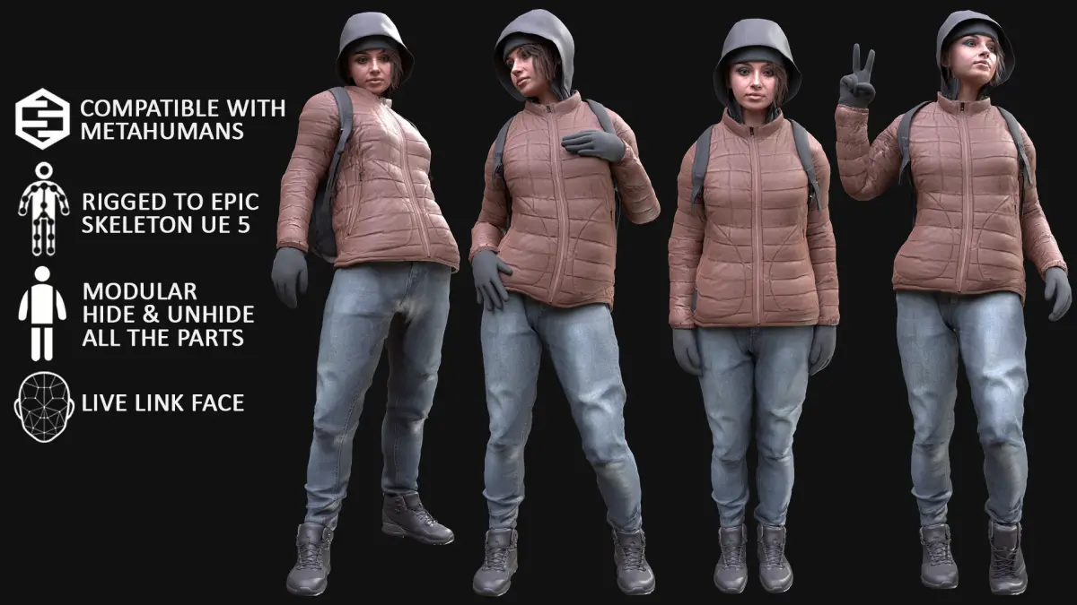 - UE 5.1-5.2 - Rigged to Metahuman Skeleton, Modular (Body + Clothing)