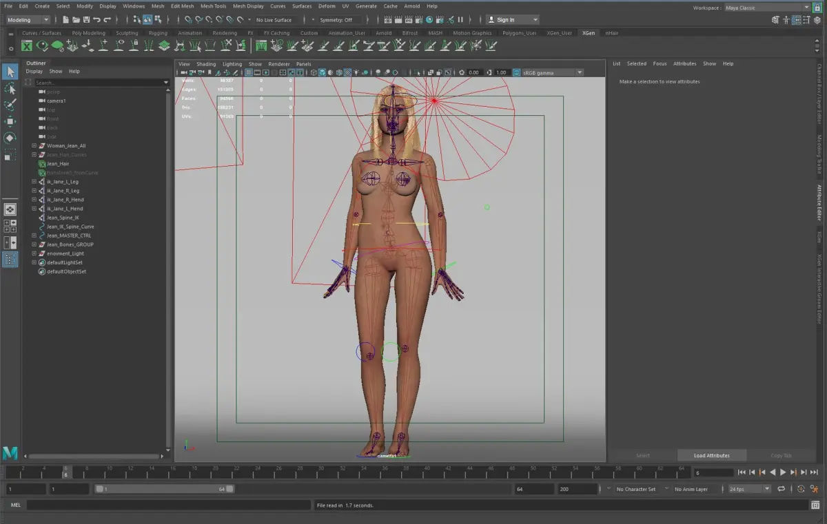 ATTENTION!!! XGen - hair is not ready for animation. Themselves will have to make additional settings dynamic and contact.
