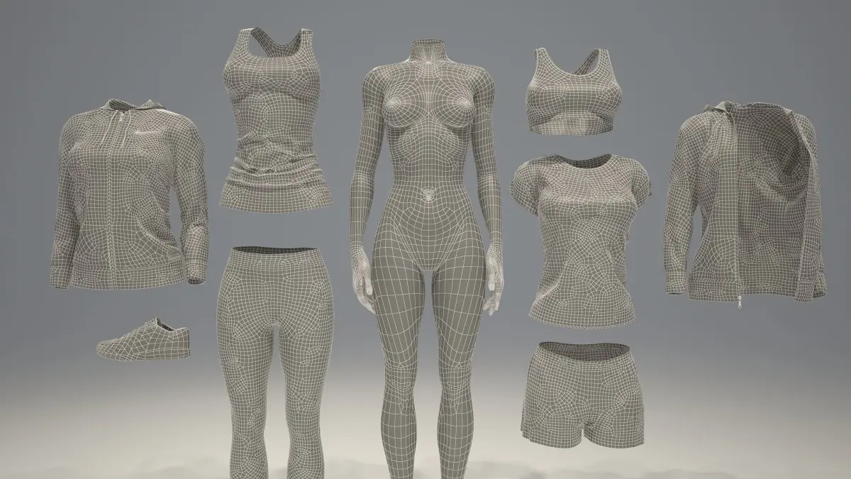 Eight elements of clothing for each of the poses: