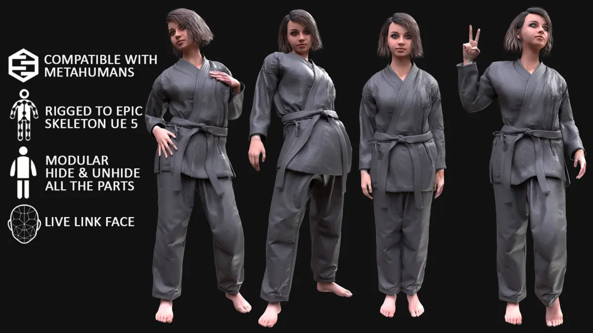 - UE 5.1-5.2 - Rigged to Metahuman Skeleton, Modular (Body + Clothing)