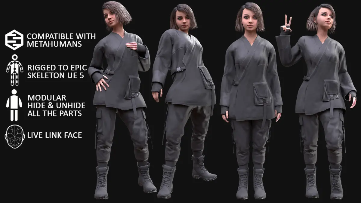 - UE 5.1-5.2 - Rigged to Metahuman Skeleton, Modular (Body + Clothing)