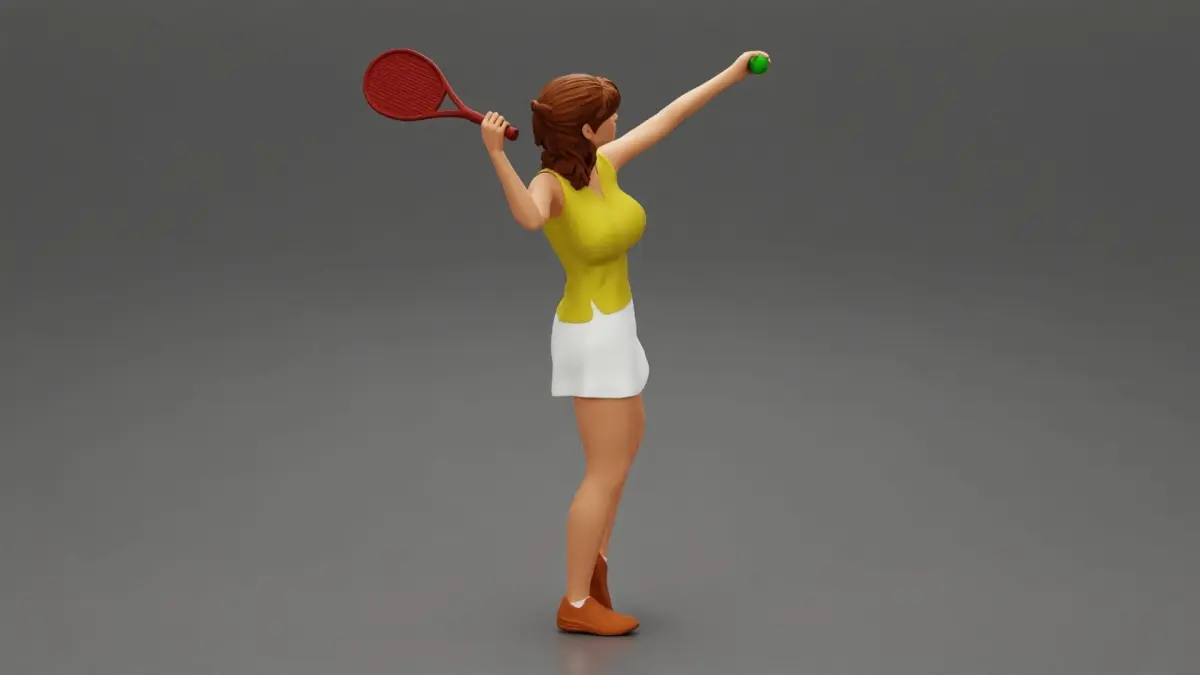 Home Catalog Woman playing tennis giving service throwing ball 3D print model