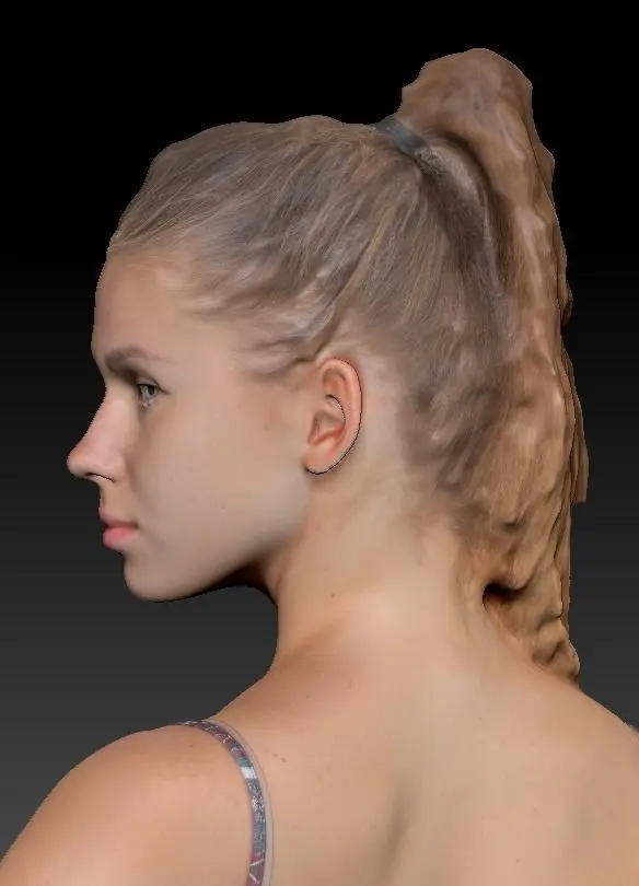 This is a 3d scanned model made with photogrammetry technique in our own custom built 3D scanner equipped with Canon 200D cameras. This scan was processed through Reality Capture and retopologized automatically via ZRemesher within Zbrush.