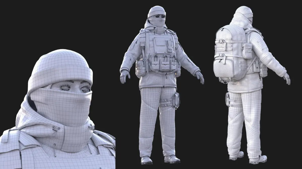 Realistic 3D model of Woman - Winter Military Outfit - Modular - Rigged