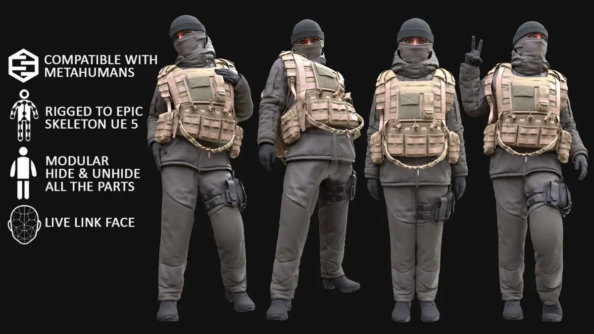 - UE 5.1-5.2 - Rigged to Metahuman Skeleton, Modular (Body + Clothing)