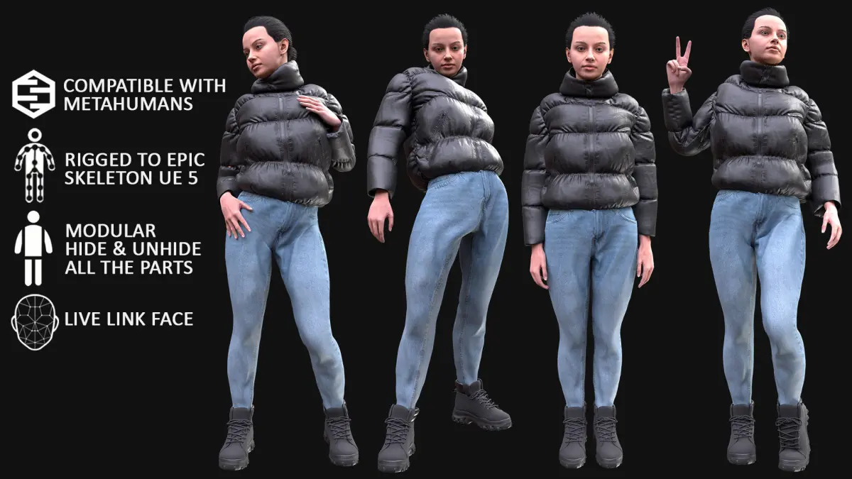 - UE 5.1-5.2 - Rigged to Metahuman Skeleton, Modular (Body + Clothing)