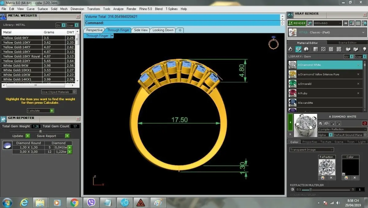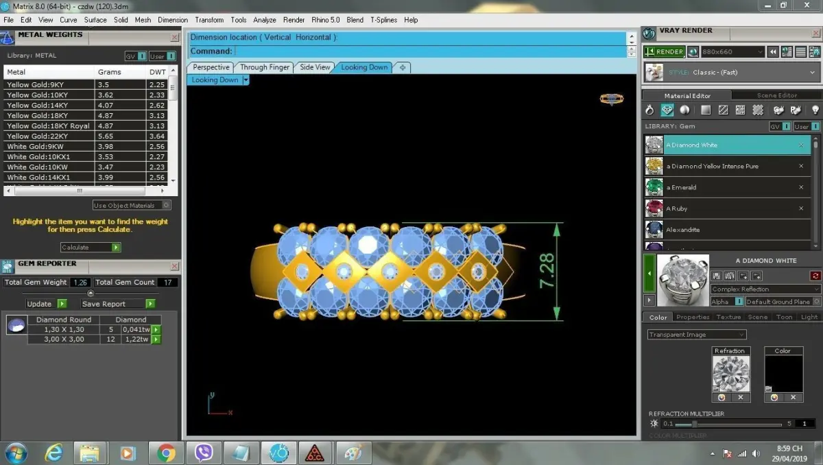 The 3D file includes images with complete specifications such as dimensions, weight, and stone details, ensuring precision for jewelers. Fully compatible with CAD/CAM software, the model is ready for real jewelry production. This makes it an excellent resource for designers, jewelers, and manufacturers seeking a luxurious multi-stone ring design.