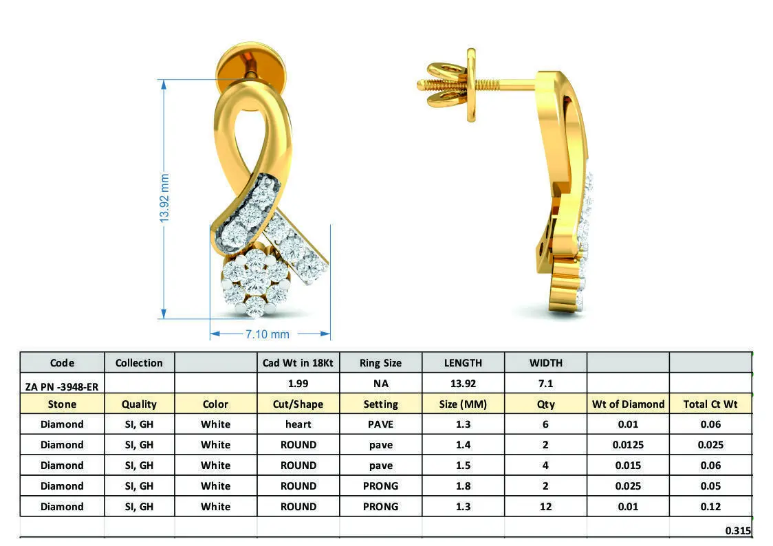 Design Master11provides solutions for cad, render, catalogue and model view for diamond jewellery designs. If you want any changes in this design please contact us, I will get back to you within 5-8 hours. This type of earring maybe called solitaire earring, stud earring, drop earring or halo earring. You can change the stone to round, emerald, heart, pear, princess so the earring will be called as round tone earring, emerald earring, heart earring, pear earring, and princess earring respectively.I have uploaded a render image of the product but you can change the color of stone as per your convenience. For example, if you don’t like the diamond earring, so you can add a red stone for the ruby earring, green stone for the emerald earring, yellow stone for citrin earring, blue stone for the sapphire earring. This is a complete fashion earring which you can wear in your everyday life. You can check some of the most famous earring: oval earring and flower earring