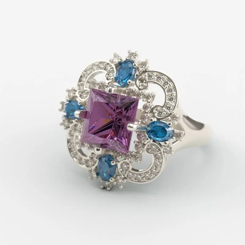 Gems: 8.0x8.0mm - 1, oval 4x3mm-4, 1.3mm-32, 1.0mm- 32.