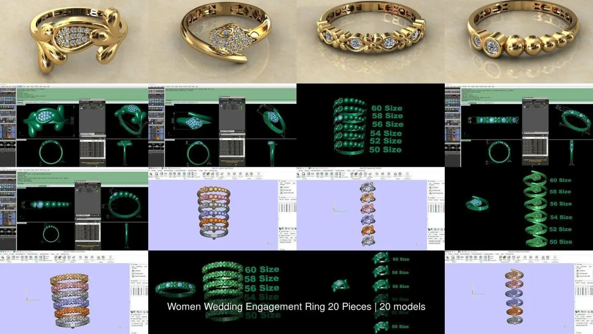 Women Wedding Engagement Ring 20 Pieces 3D Model Pack