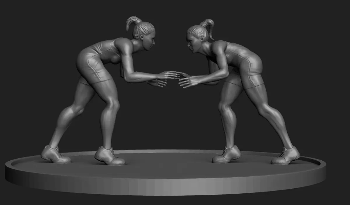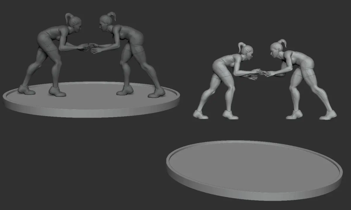 Women wrestler Figurines STL OBJ files included Ready to be printed 5inch height Solid modelSplit model is also included in STL format