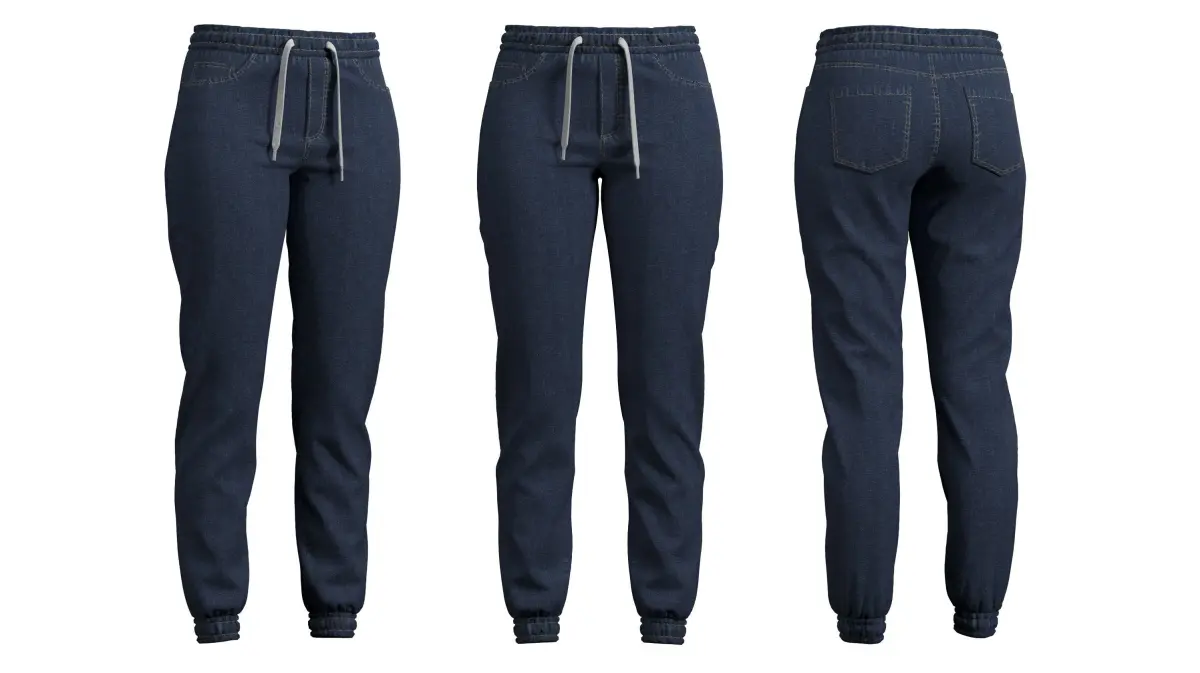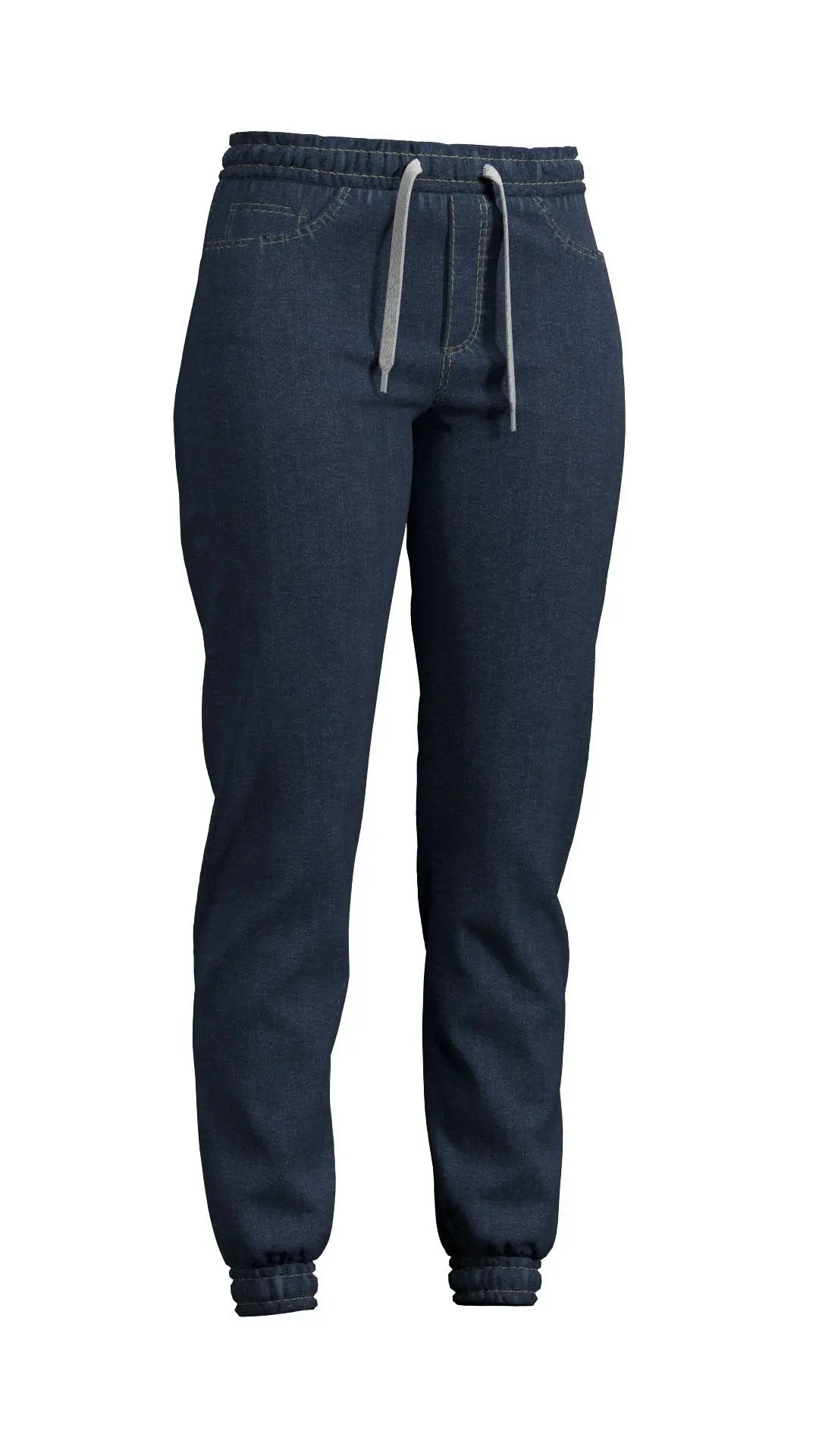 Womens Casual Tie-Front Fashion Jogger Denim Pants Blue 3d model