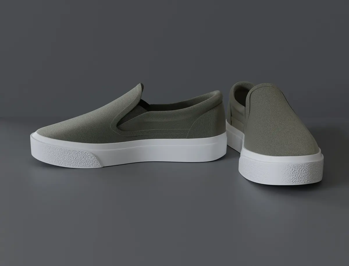 Cloth women's shoes slippers. On a rubber sole. The model is made by one object (one shoe-one mesh) Textures of the inner logo and sole in the zip archive. The fabric material is procedural. Change the color to your liking.