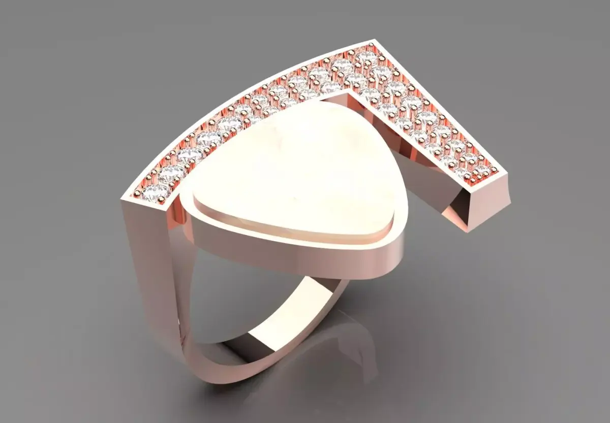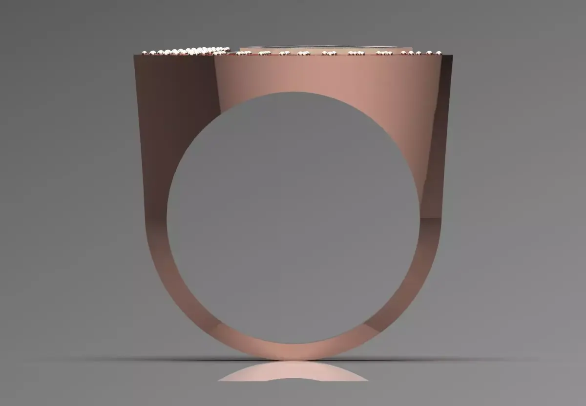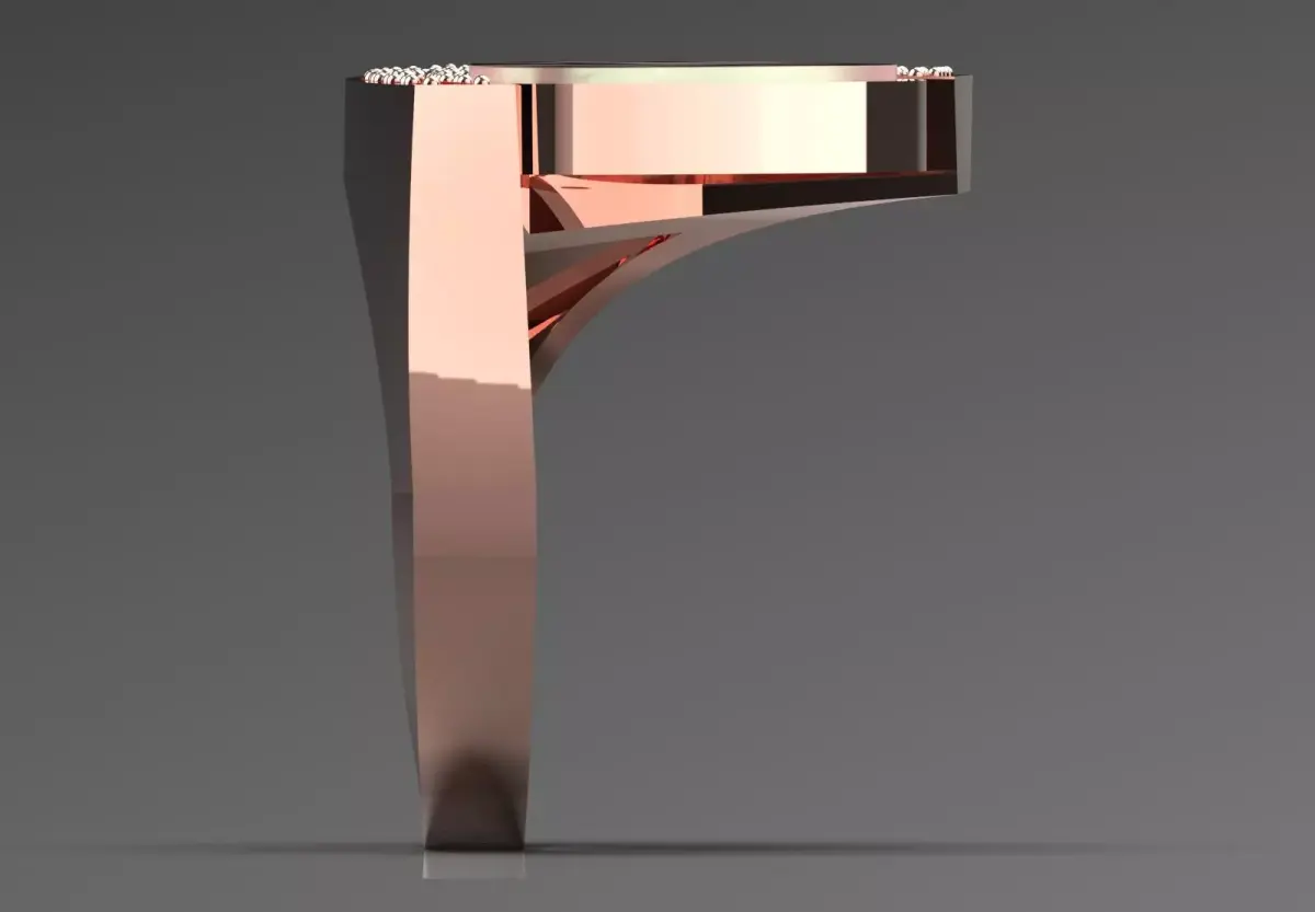 - Ring band: The body of the ring is made of shiny and polished rose gold.