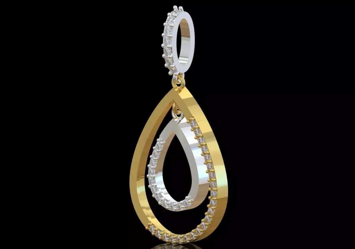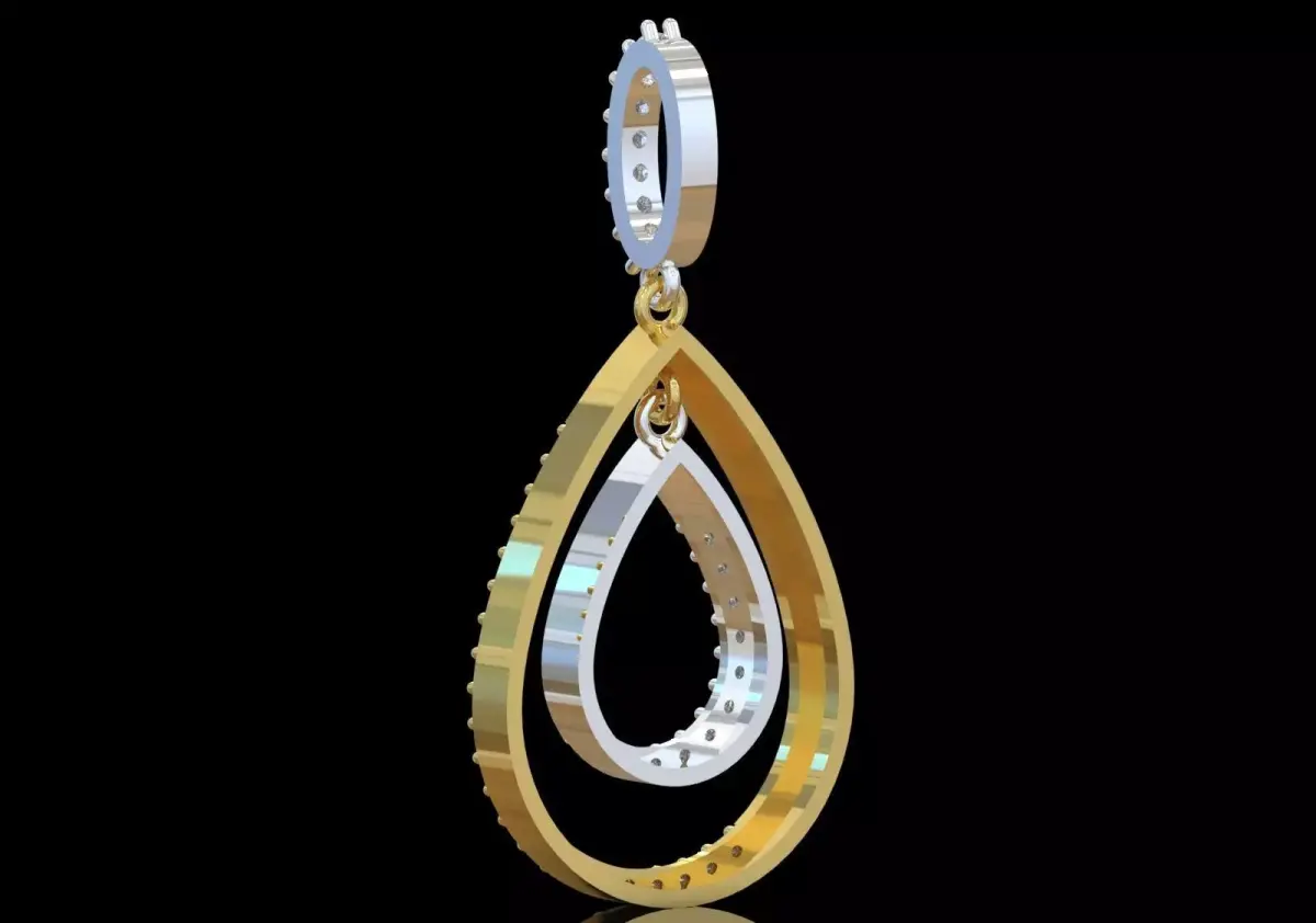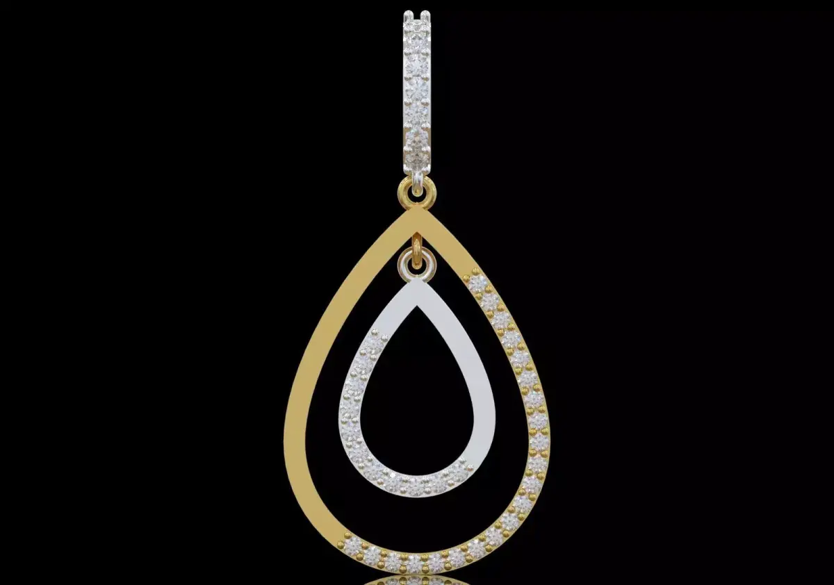 ** Two -layer tear drop design: ** Plaque is made of ** Two tear frames in you *, each of which is made up of different metal and generates a 3D and deep *.** ** Metal Contrast and Decoration: ** ** outer layer: ** Frame larger than ** Simple and warm yellow gold ** and decorated at the bottom with a ** row of small golden spheres *. * Inner Layer: ** Smaller and inner frame is made of ** white/silver gold ** and is completely decorated with ** small diamonds ** that provides maximum shine.** How to connect and shine: ** ** Hanging Connection: ** The plaque is hung by a ** ring connection with Pava Diamonds *. * Motion: ** Hanging design makes the license plate beautifully reflecting the light and allowing the layers to move semi -free.** Use of Beading: ** Details of the golden balls in the outer frame and around the diamonds in the interior frame, texture and classic appearance add to the modern design.