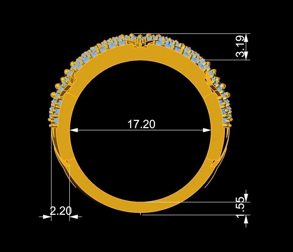 This womens ring features a square cut gemstone at the center highlighted by rows of sparkling diamonds that cover the band with brilliance. The elegant design combines a strong geometric look with feminine details making it suitable for both daily wear and special occasions. The 3D model is created with accurate dimensions gemstone sizes and weight information ensuring it can be used directly by jewelers CAD designers or manufacturers. It is suitable for production in yellow gold white gold or platinum and can be customized with different gemstones such as emerald or ruby. With its refined proportions and luxurious style this ring is a perfect choice for creating high quality womens jewelry pieces.