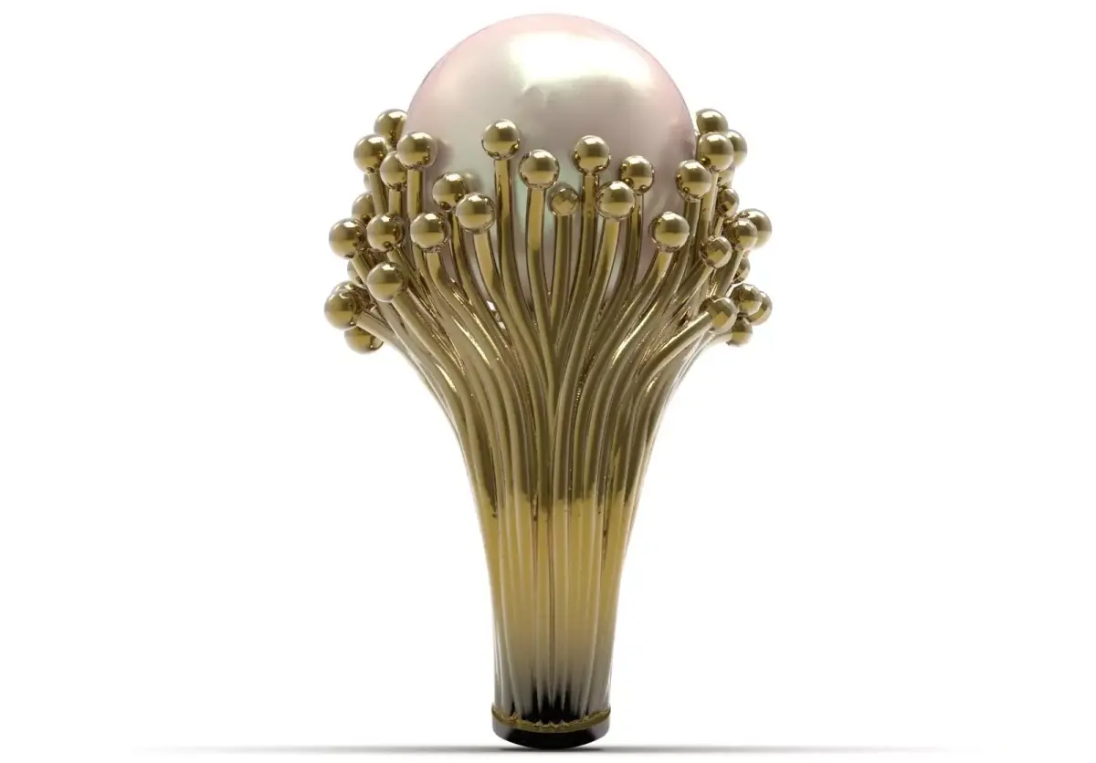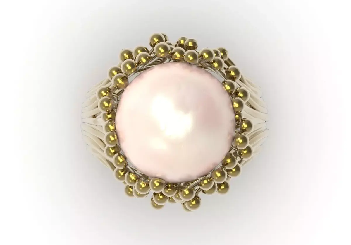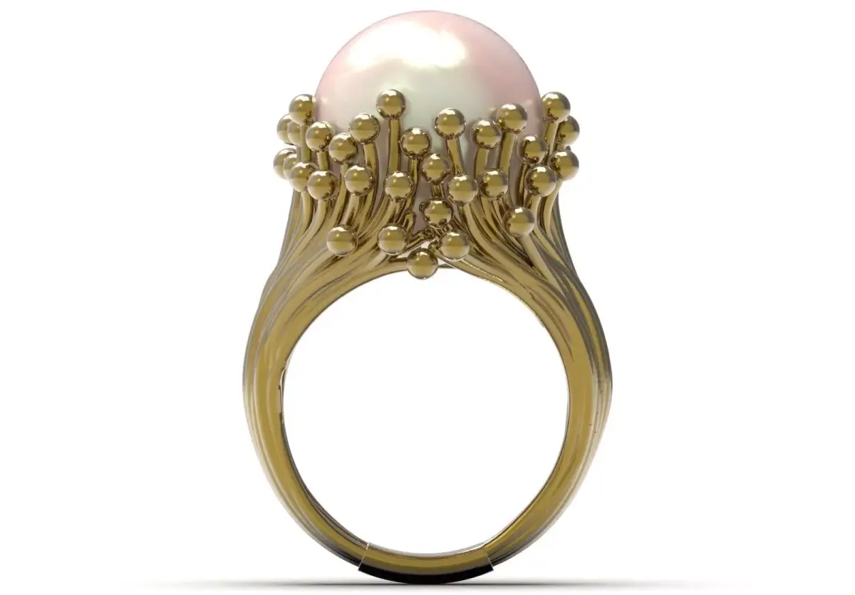 - Product title: 3D file of cocktail/party ring with round pearls and wire clusters (organic design) - code pr0076
