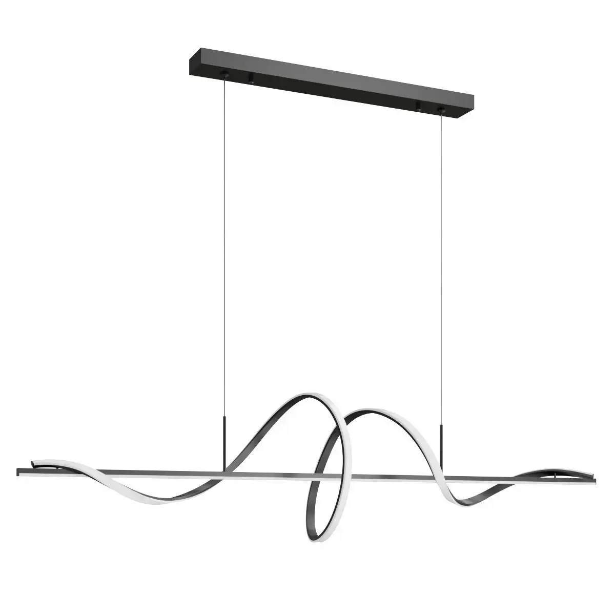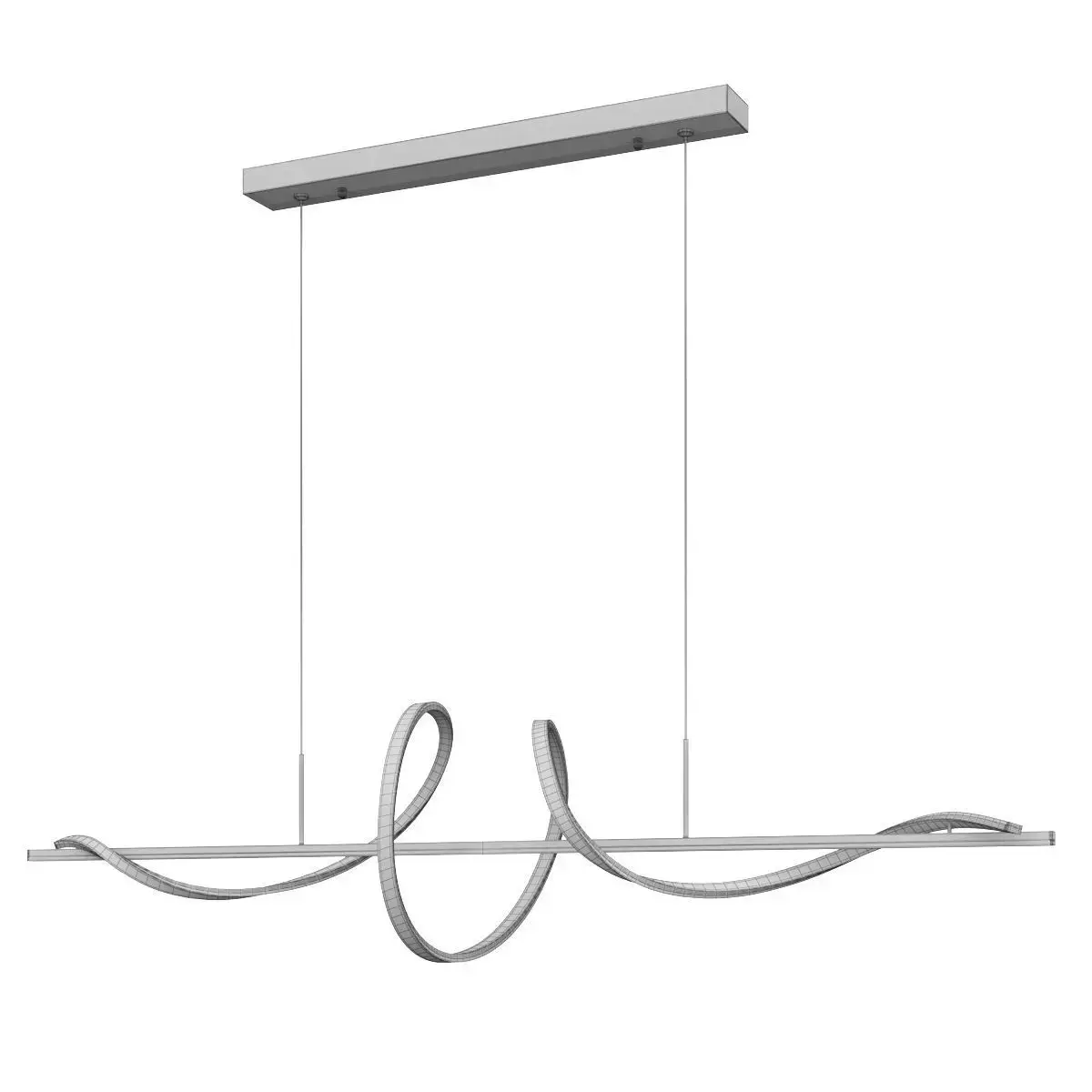 This is a high-quality 3D model of the WOMO Spiral LED Pendant Light (WM2129), a truly unique and artistic lighting fixture. Its design is a modern and dynamic take on a linear pendant, featuring a fluid, wavy LED strip that elegantly twists and turns around a central, straight bar. This model perfectly captures the lamp's sculptural form and the beautiful contrast between the rigid metal frame and the organic, flowing light element.