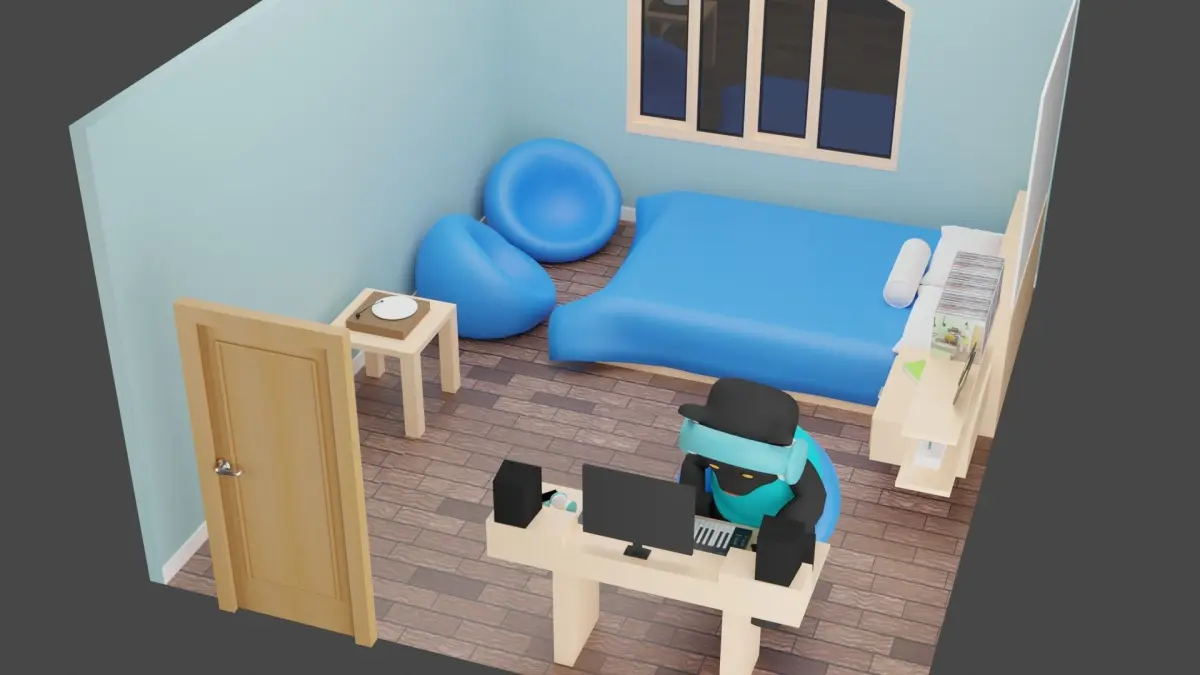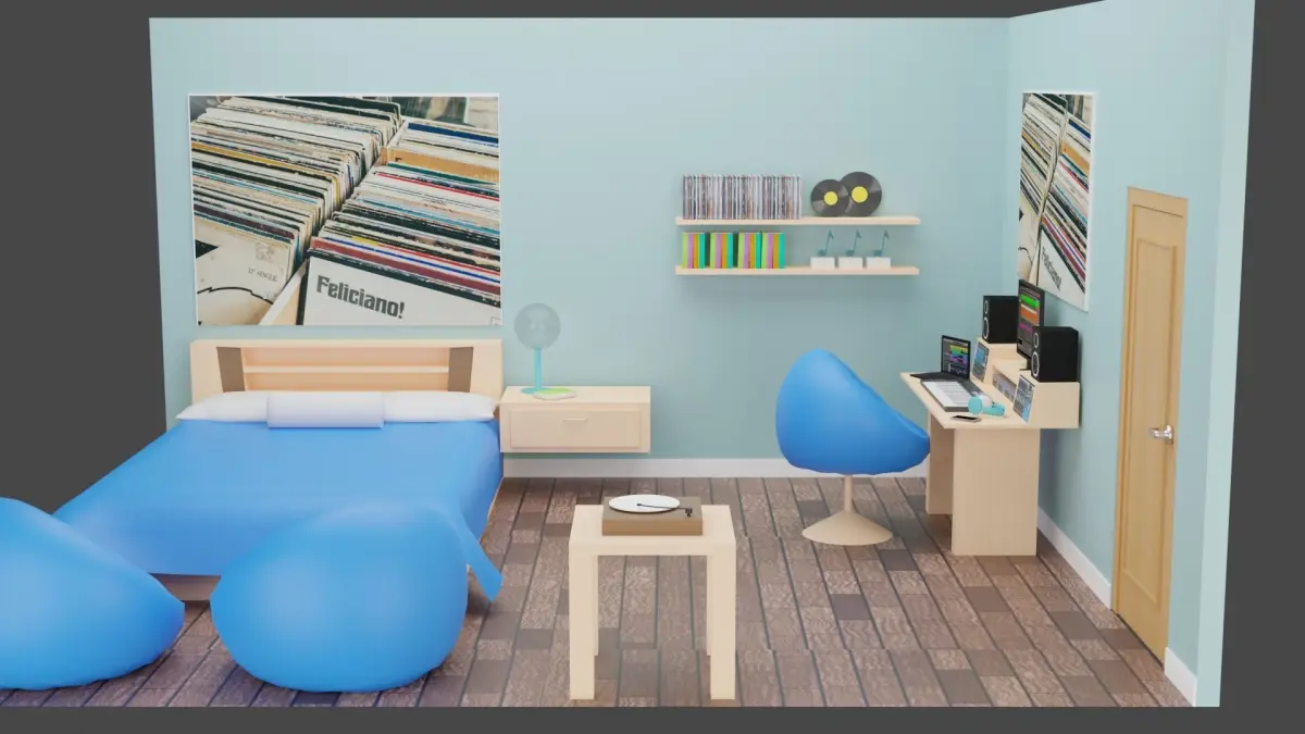A music producer's real-world scale bedroom with a rigged male bear character named Wonshik. This product is part of my DC22 collection: an indie animated miniseries created by me. Both the bedroom as well as the character -which is fully rigged, including the shirt he is wearing- are ready to be used in any project such as gaming and cinematics.