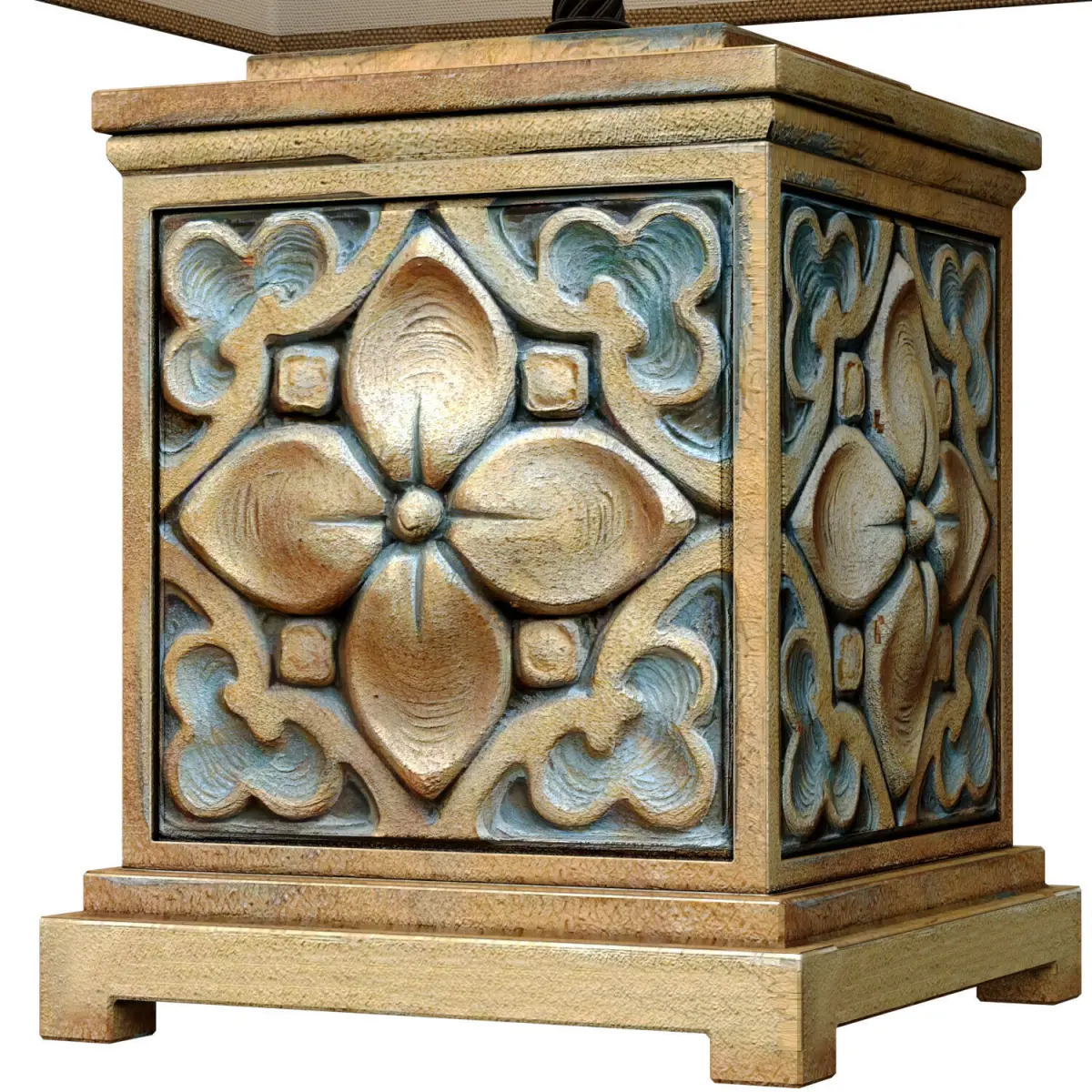 Charming bedside lamp with a textured base made of aged, patinated light wood and a fabric shade for decorating the living room, office, study, bedroom, bedside table in oriental style,Arabic Ceramic Table Lamp Oriental wood,Morocco Table Lamp,Islamic Pattern,Eastern Table Lamp,Majlis Table Lamp,Arabic Style Lamp for Home Decoration, Bedroom Lighting,Oriental pattern,