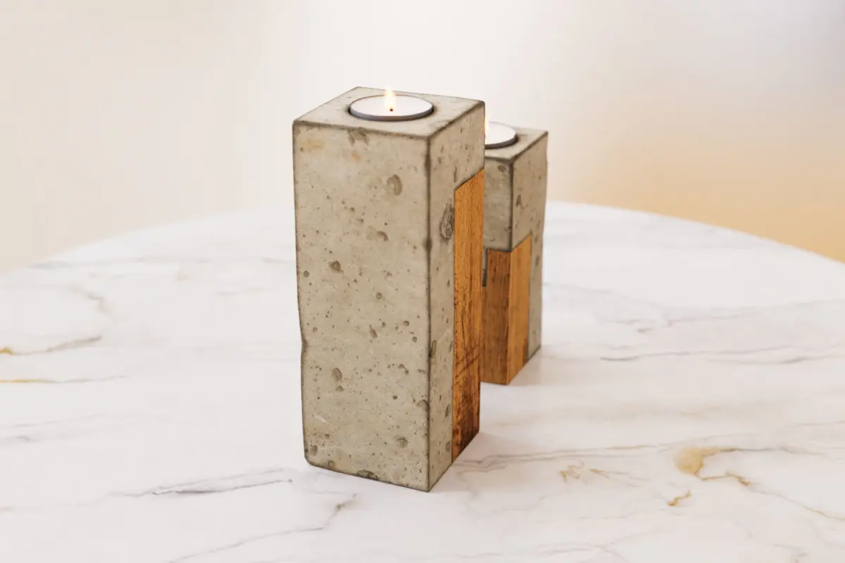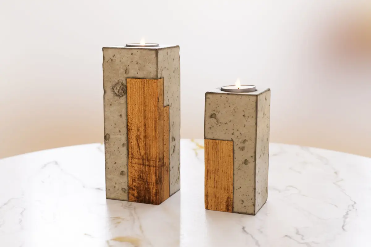 High-quality, photorealistic modern candle holders made of wood and cast concreteModel prepared for architectural visualizations inside various 3d software.