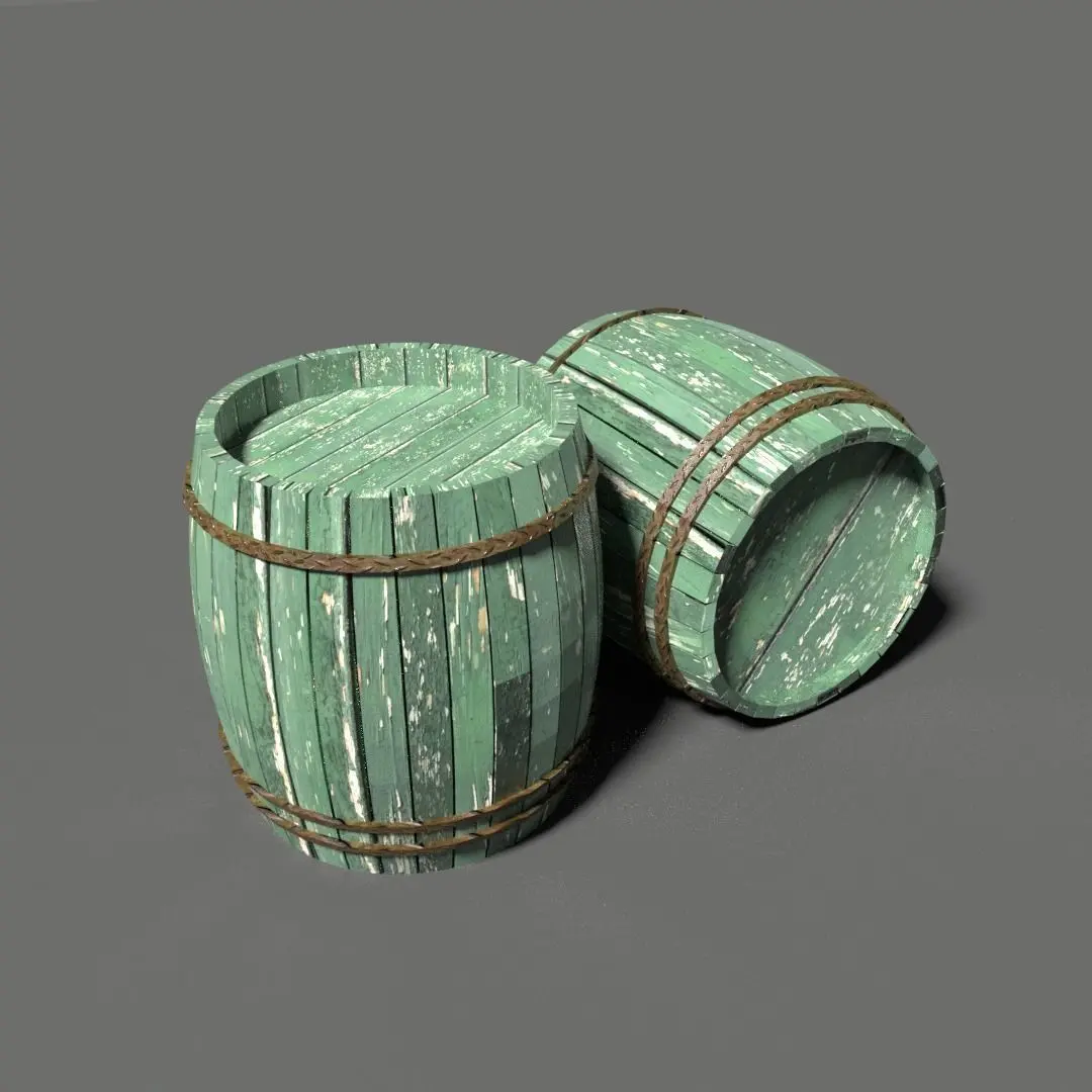 Wood Barrel Set 3D Model