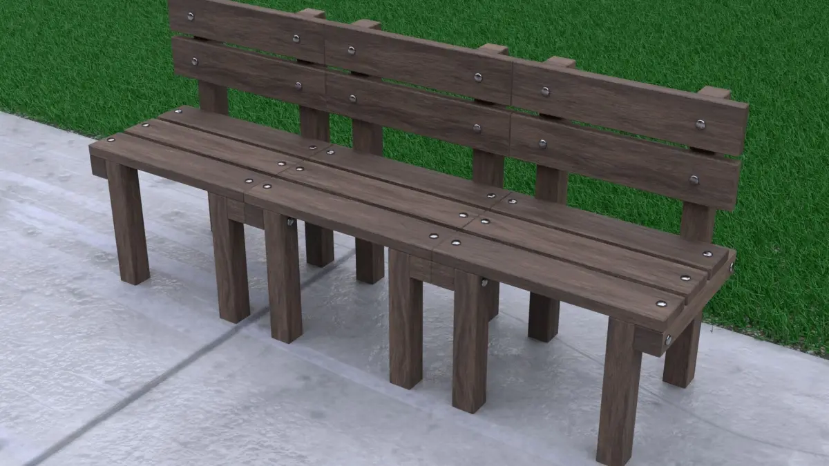 This is a model of a wood bench. The bench is held together with steel bolts. Wood and steel textures are supplied with the model.