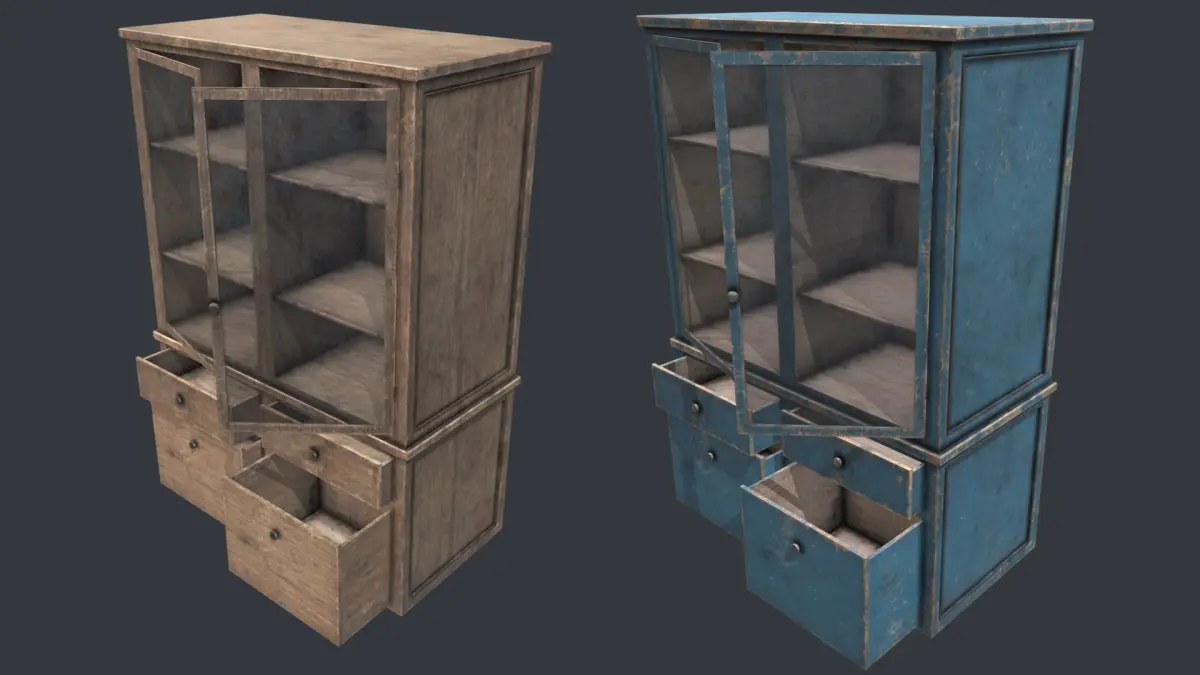 A Detailed Wood Cabinet with High-Quality PBR Texturing