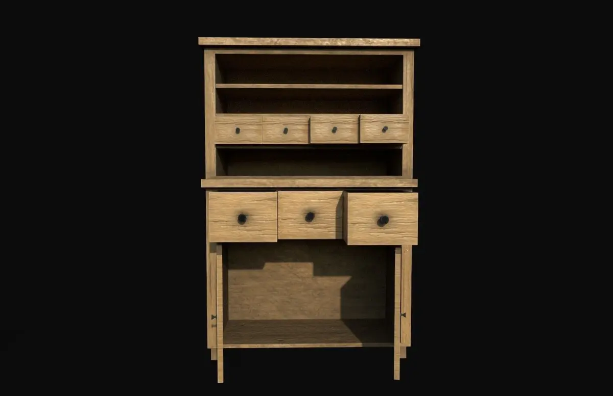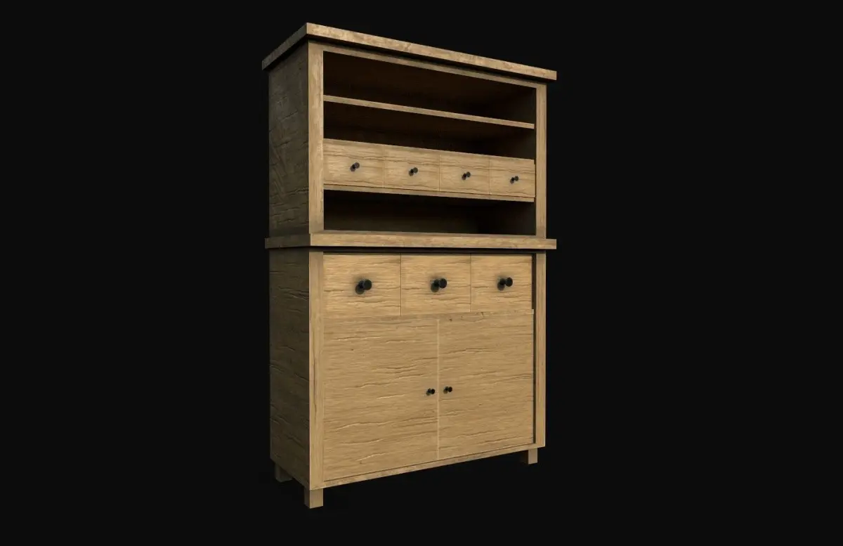 3D Low-poly Cabinet modeled in Maya and textured in Substance Painter, ready for games.